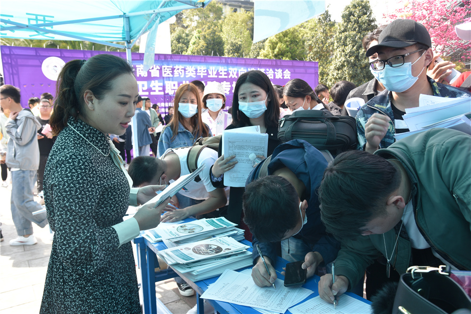 本次校园招聘会由云南省教育厅主办,XK星空和云南省大中专毕业生就业服务中心承办,昆明市人力资源和社会保障局、昆明市晋宁区劳动就业服务局、昆明市人才服务中心、昆明市人才服务中心卫生分中心、云南省高校毕业生就业促进会、云南省企业人力资源管理师协会昆明市人力资源和社会保障协会等单位协办,并得到了晋宁区交警、公安、劳动就业服务等部门的大力支持。招聘会现场秩序井然,气氛热烈。应届毕业生求职热情高涨,主动对意向单位的概况、发展前景、福利待遇等方面进行询问了解。应聘者向招聘人员介绍自身专业优势,表述求职意向并递交个人简历。