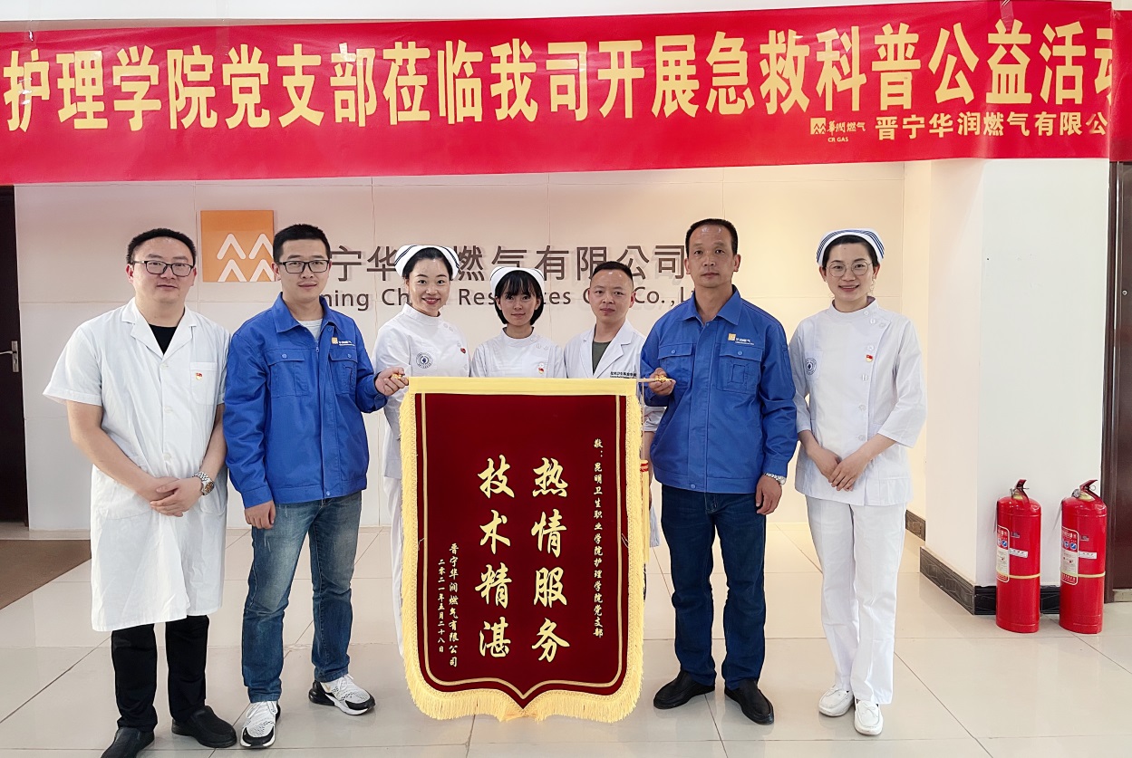 科普宣传进企业,急救知识入人心。5月28日,护理学院党支部到晋宁华润燃气有限公司开展急救科普公益活动,为公司员工介绍了紧急抢救措施、心肺复苏、异物梗阻急救、触电及溺水院外紧急救护等内容。围绕急救处理的基本知识,对抢救方法和操作过程以及急救过程中存在的注意事项等内容做了重点讲解,并让公司员工进行心肺复苏的现场操作演练,对演练中存在的问题和注意事项进行逐一指导,增强自救互救能力。
