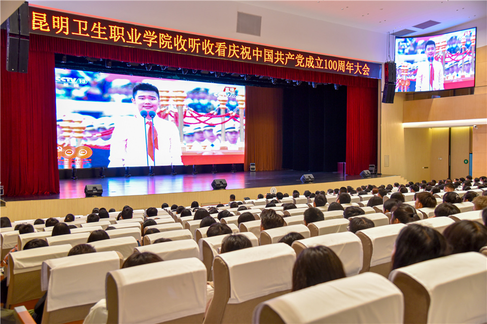 7月1日上午8时,庆祝中国共产党成立100周年大会在北京天安门广场隆重举行,中共中央总书记、国家主席、中央军委主席习近平发表重要讲话。XK星空在校党政领导干部、没有教学任务的教师和学生代表1200余人在明德会堂集中收听收看了中国共产党成立100周年庆祝大会直播,其他学生在教室收听收看大会实况。