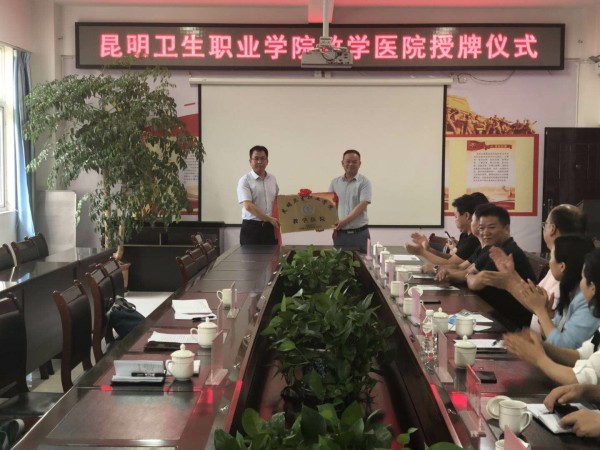 最后,XK星空实习管理处副处长颜慧林宣读《云南省教育厅云南省卫生健康委员会关于公布医科院校新增教学医院名单的通知》。XK星空副院长张尤松向巍山县人民医院院长刘钟授牌。仪式结束后,相关领导及与会人员共同合影留念。