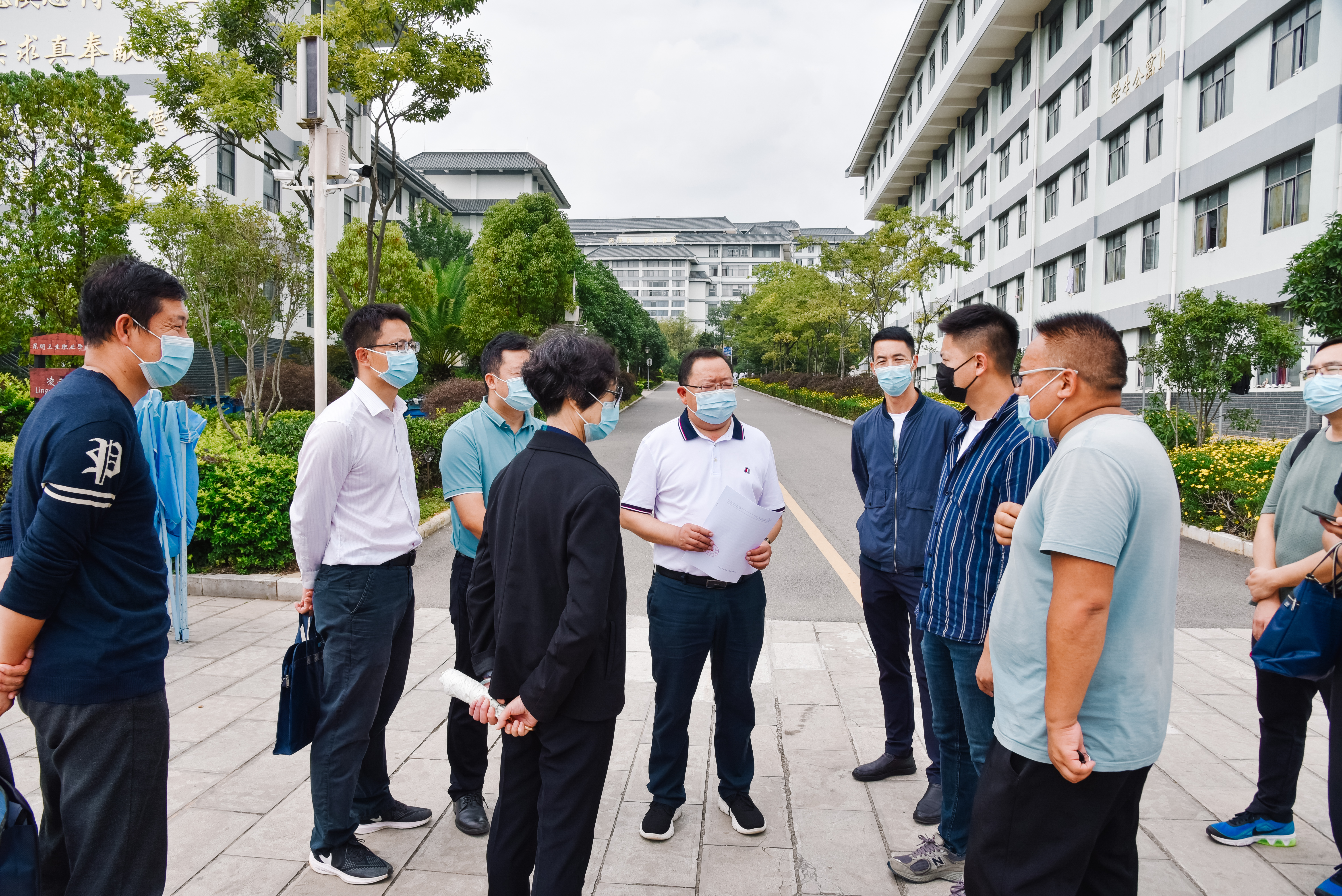 9月14日下午,昆明市教育工委常务副书记、市教育体育局党组书记、局长穆仁早,昆明市晋宁区人民政府副区长冯浩,晋宁区教育体育局局长张宏一行莅临学院调研指导学院疫情防控工作。
