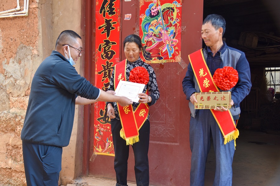 人民武装部副部长高政南老师和大学生工作部副部长王正安老师与入伍学生家属亲切交谈,询问他们的生活状况,倾听他们的声音,感谢他们为部队培养了优秀人才,并向积极送儿子参军入伍保家卫国的新兵父母表示衷心的感谢,希望家属一如既往地教育子女在部队安心服役,努力为国防建设做贡献。随后为新入伍学生军属悬挂光荣牌。