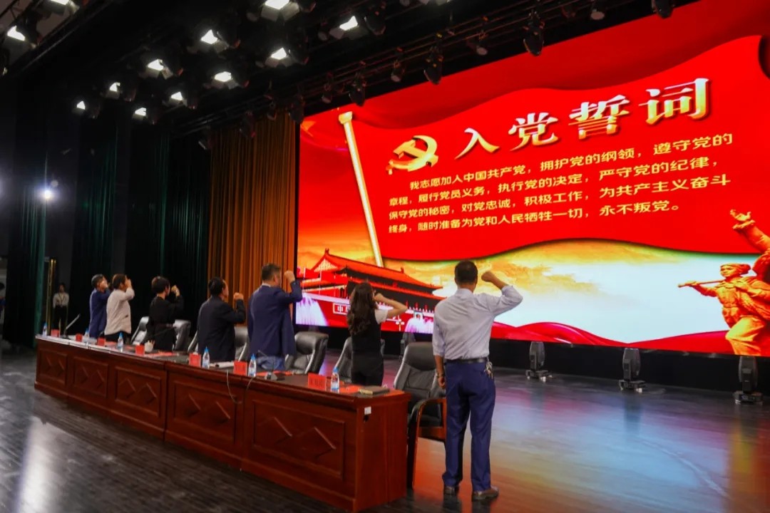 陶晓燕同志带领新党员入党宣誓,老党员重温入党誓词。一声声铿锵有力的宣誓声,激励着党员同志要坚定理想信念、提高党性觉悟。