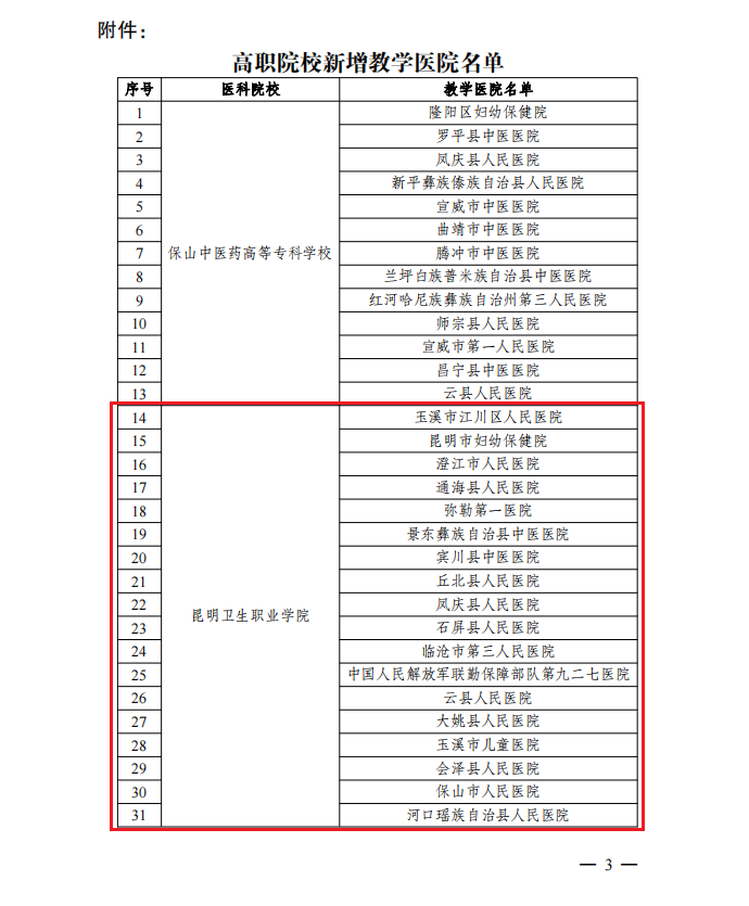 4月24日,云南省教育厅、云南省卫生健康委员会发布了《关于公布高职院校新增教学医院名单的通知》,经高职院校和医院自主申报,省教育厅、省卫生健康委专家审定,本次XK星空获批设立的教学医院共有29所。