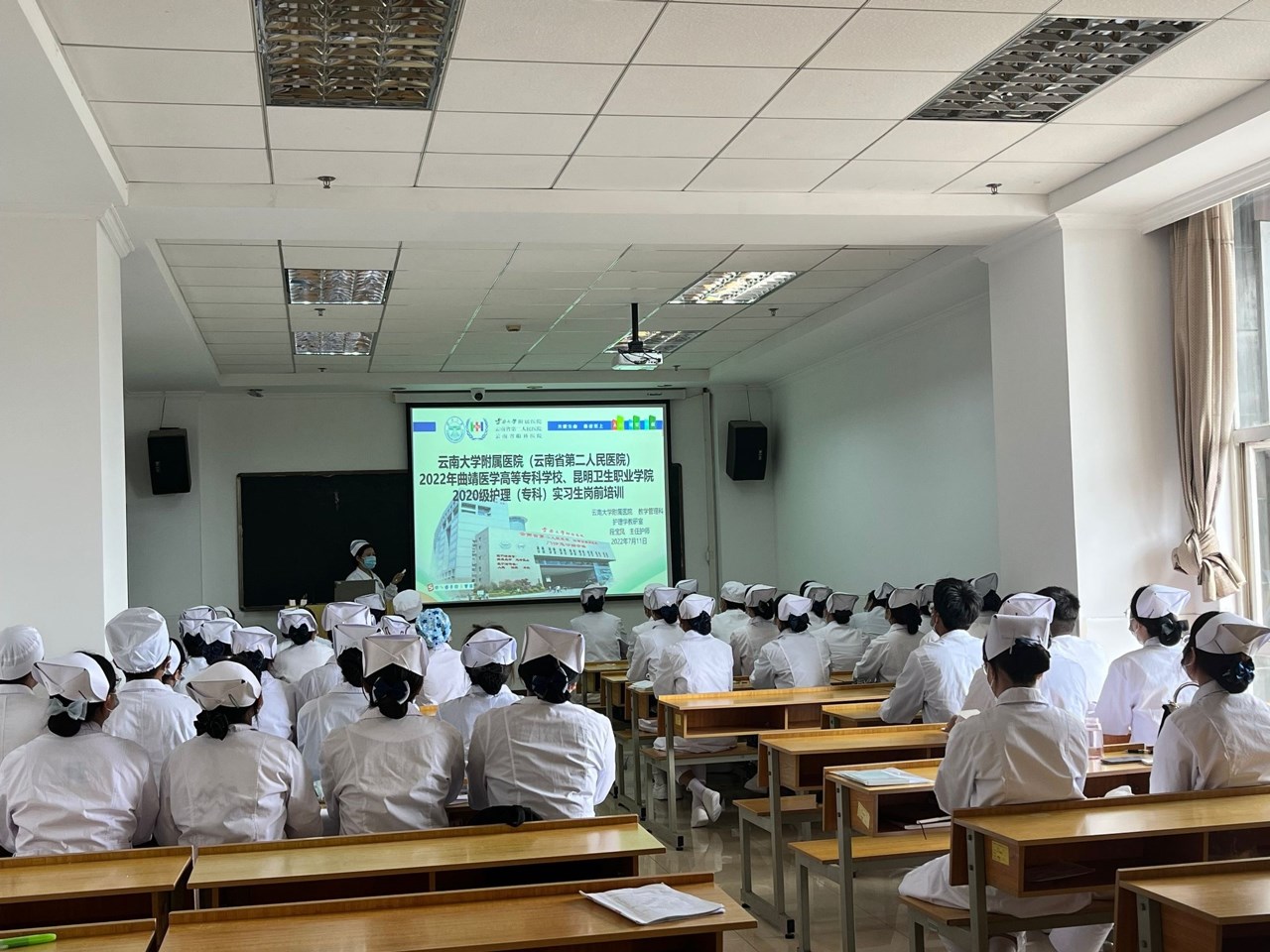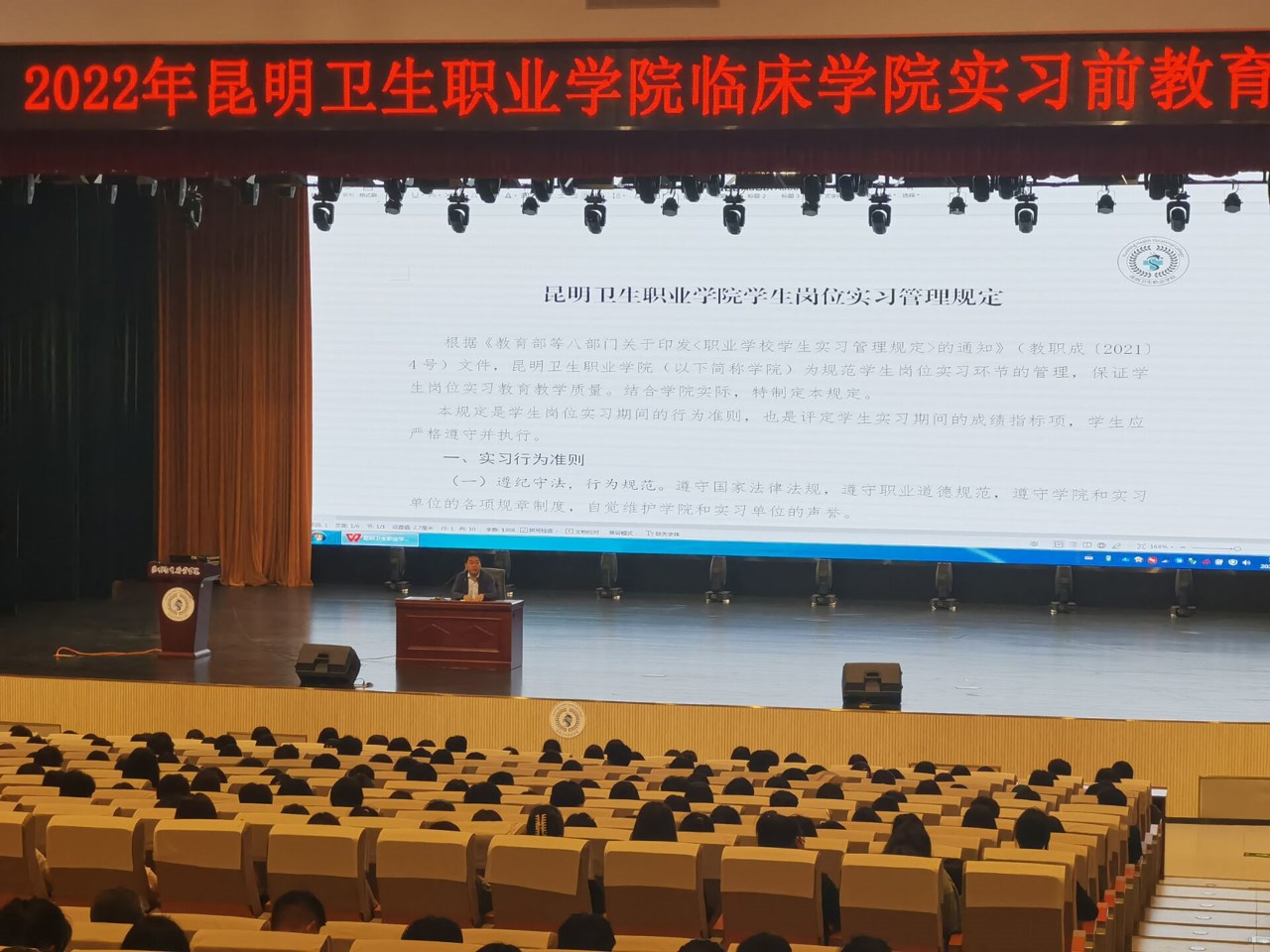 6月8日始,学校实习管理处在晋宁校区学术报告厅,分别对中医学院、护理学院、临床学院、口腔学院、影像学院、检验学院、药学院学生组织开展了近一个月的实习前教育培训,不断加强学生安全教育,提高学生安全意识。