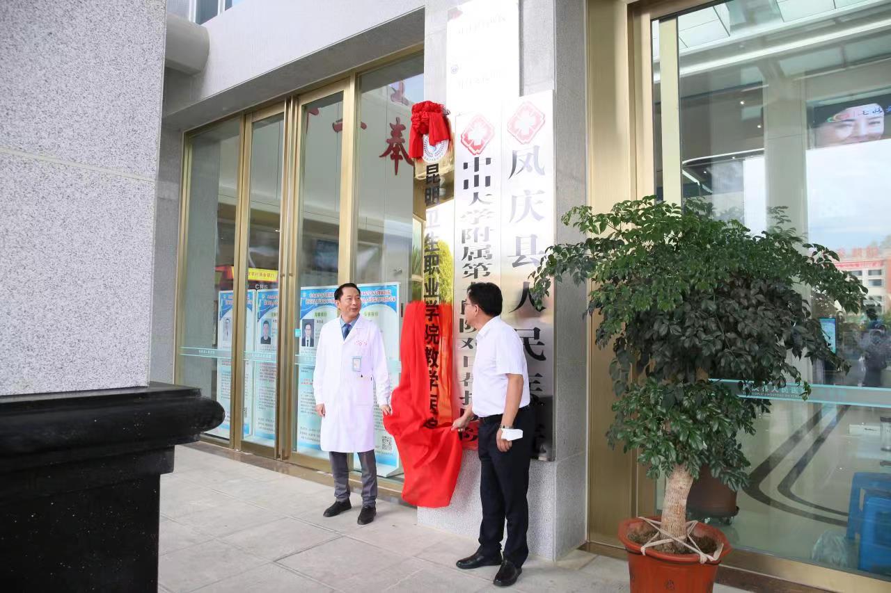 9月22日,XK星空教学医院揭牌仪式在凤庆县人民医院举行。凤庆县卫健局副局长张正伟,凤庆县人民医院党委书记段立文,凤庆县人民医院院长李海,XK星空副院长张尤松,中医学院副院长魏泽正,实习管理处副处长颜慧林,实习管理科副科长郭嘉华,实习管理科胡哲老师,以及医院相关科室人员、实习生出席了揭牌仪式。仪式由凤庆县人民医院副院长李树荣主持。