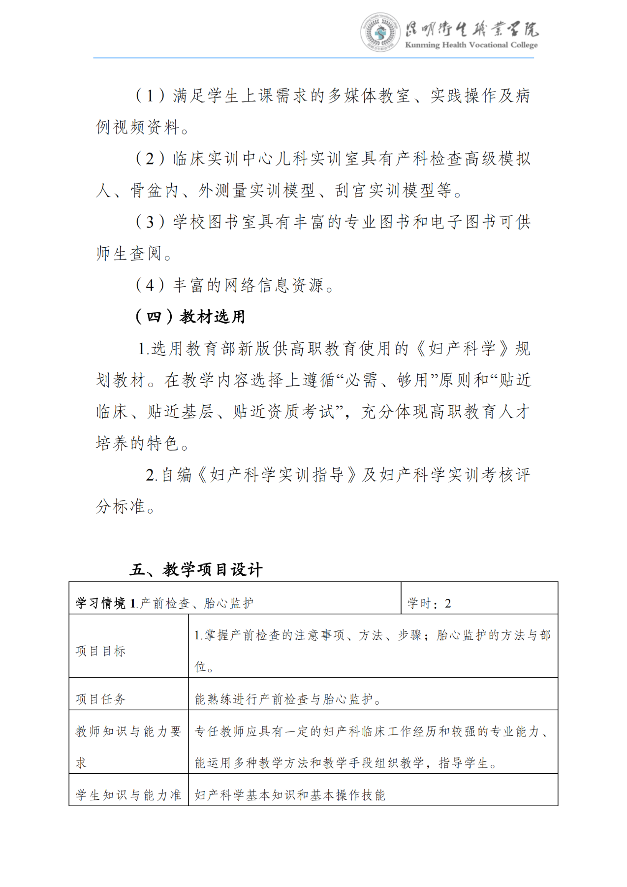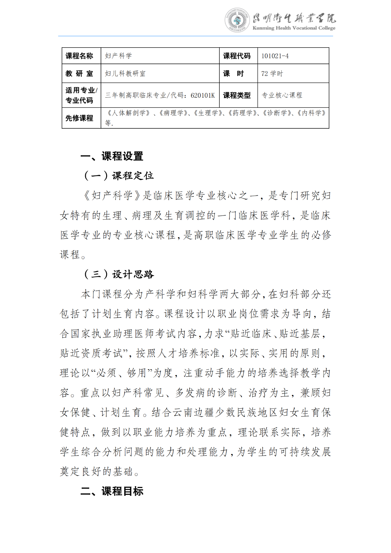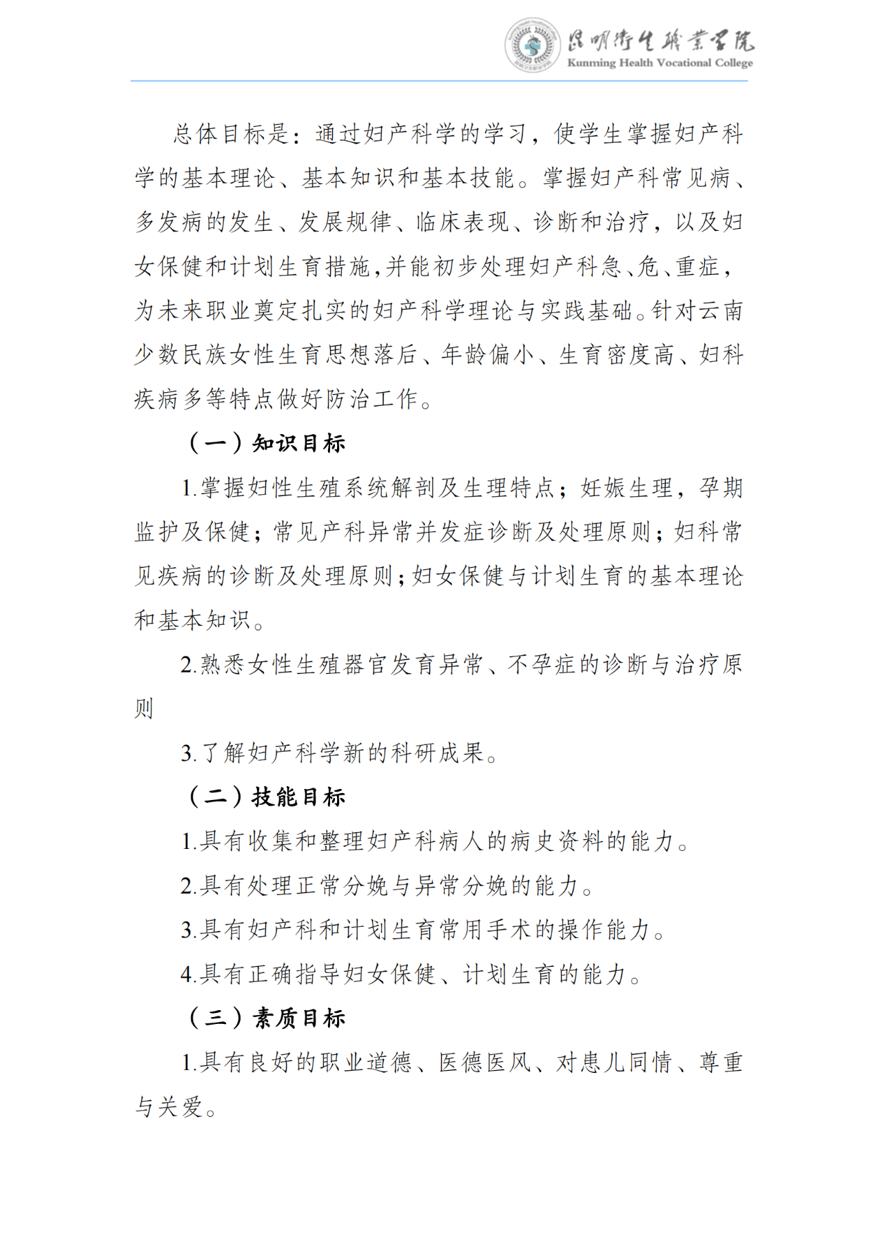 《妇产科学》课程标准