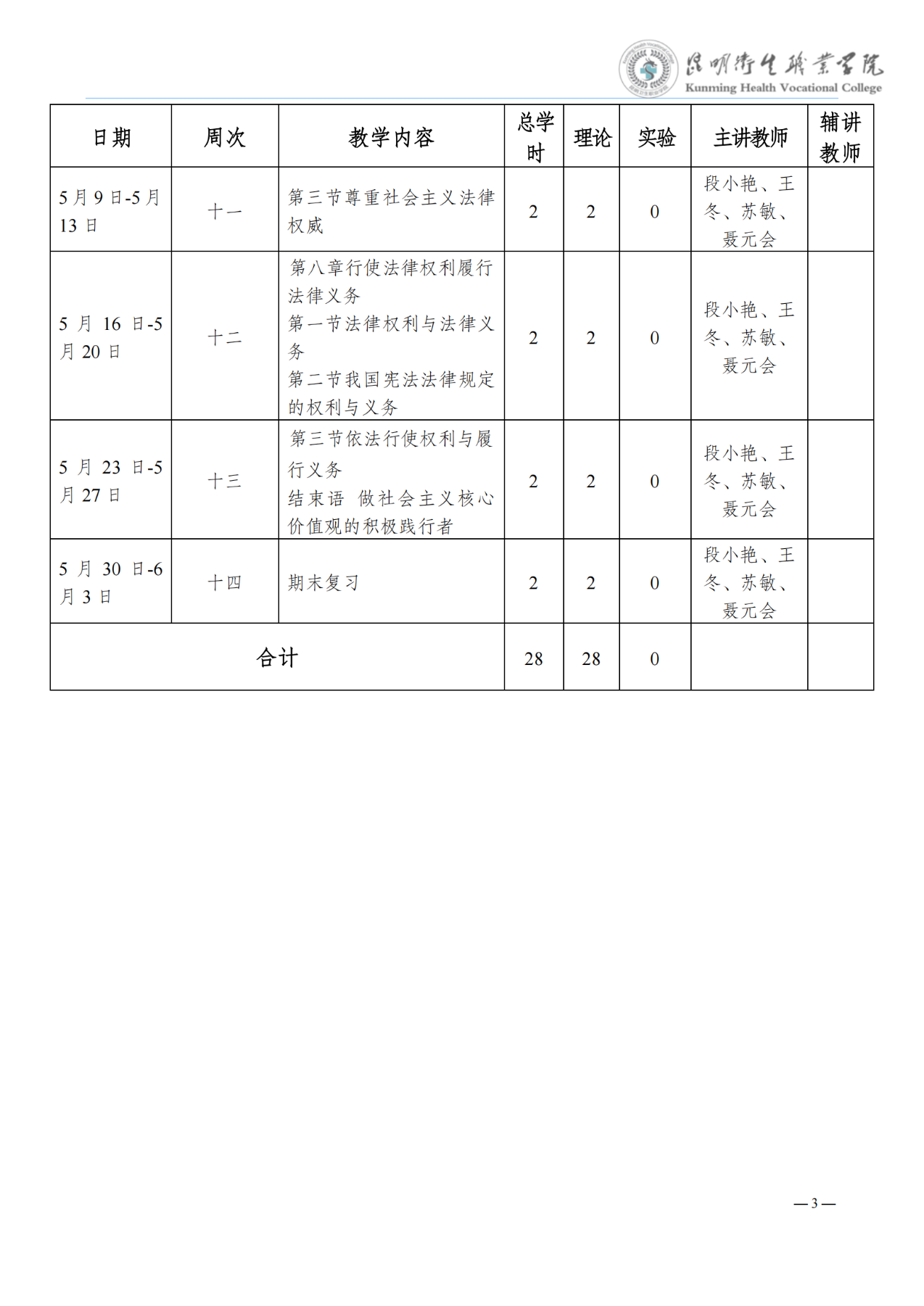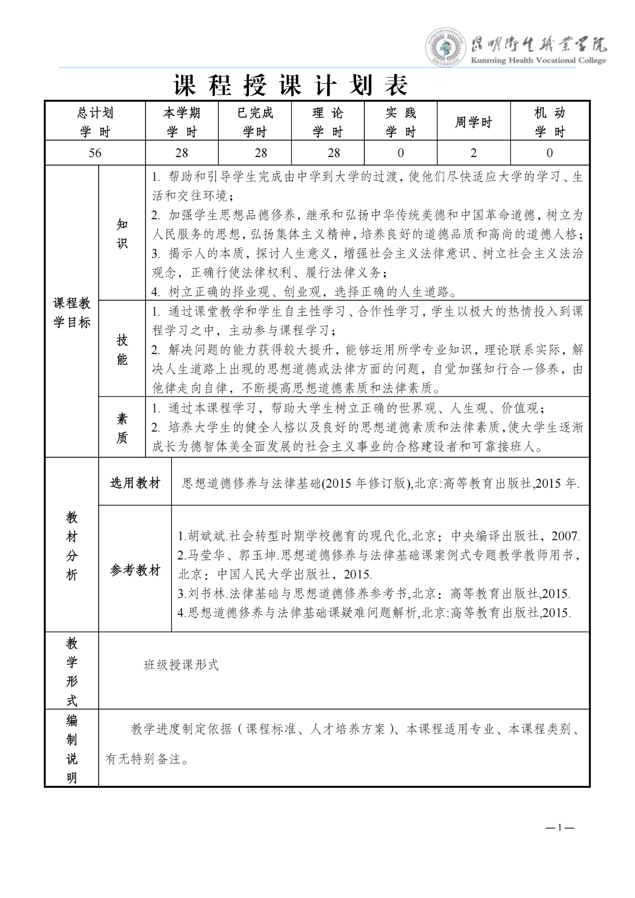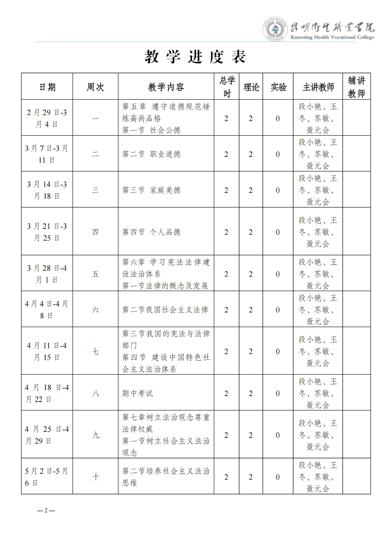 《思想道德修养与法律基础》教学进度表