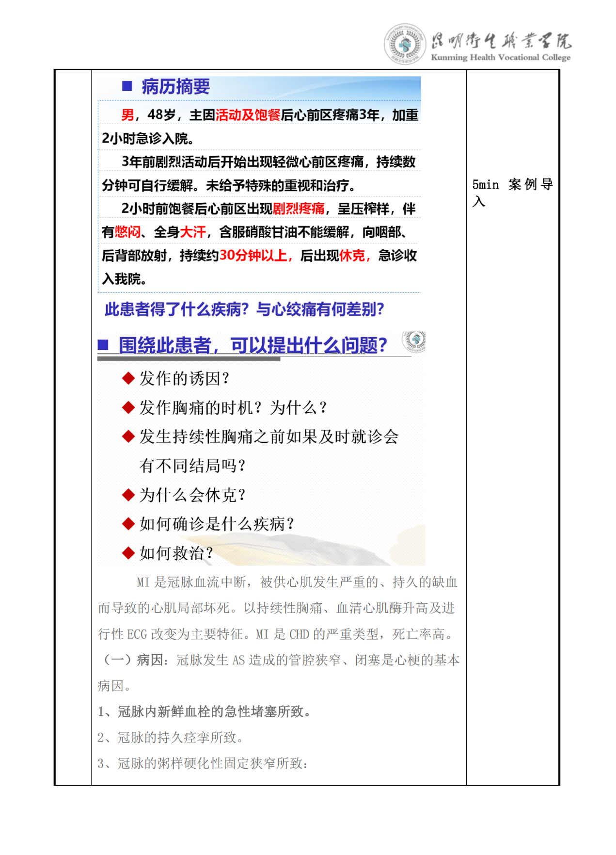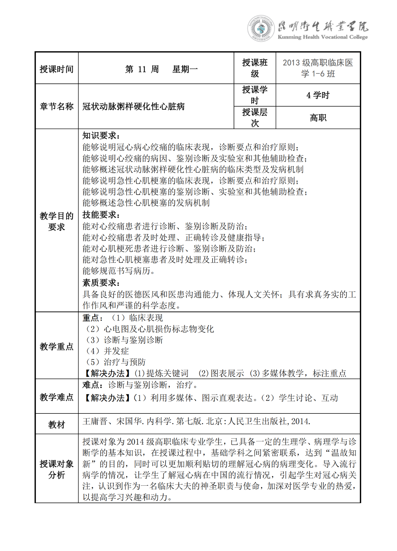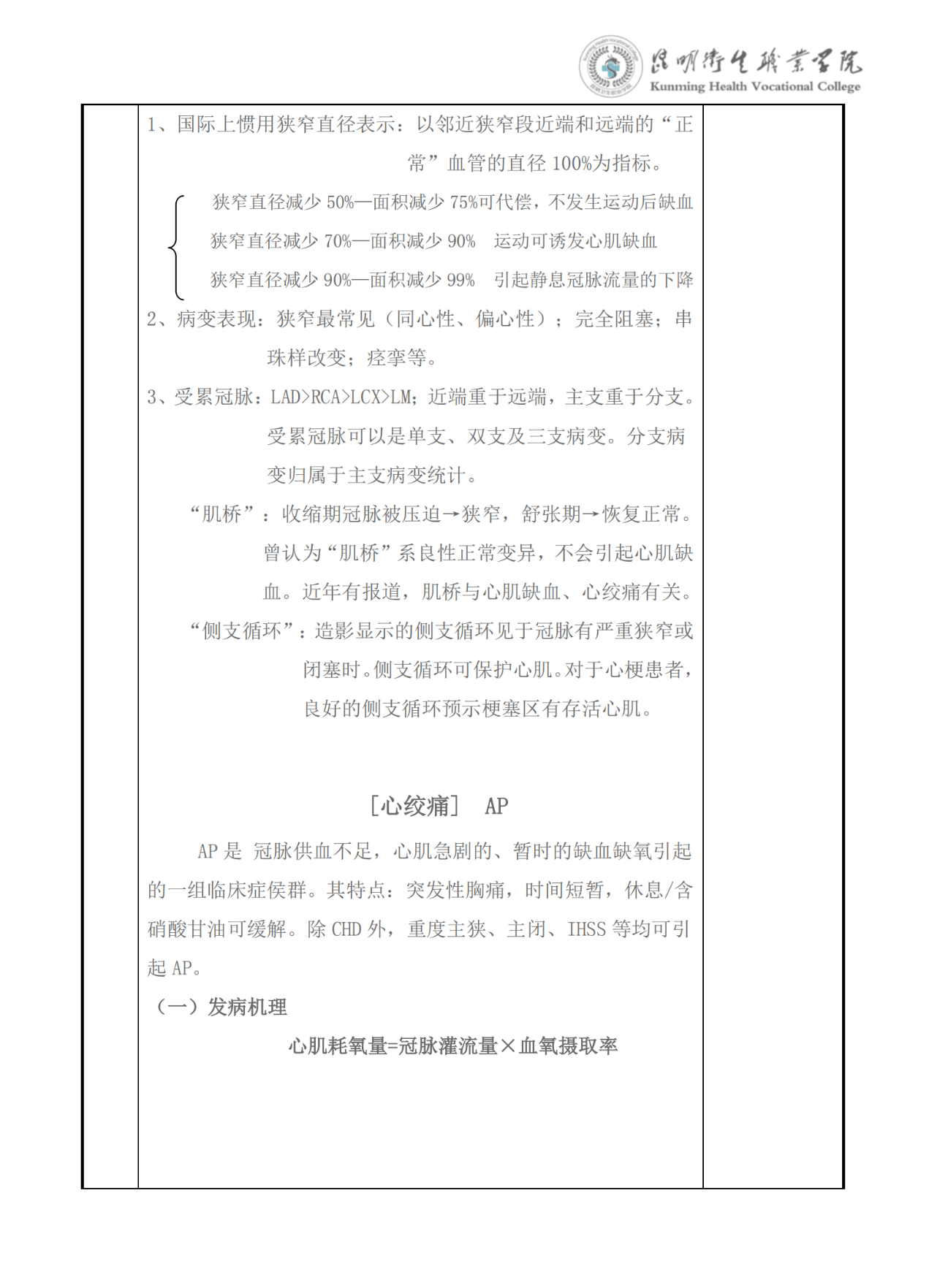 《冠状动脉粥样硬化性心脏病》教案(内科学)