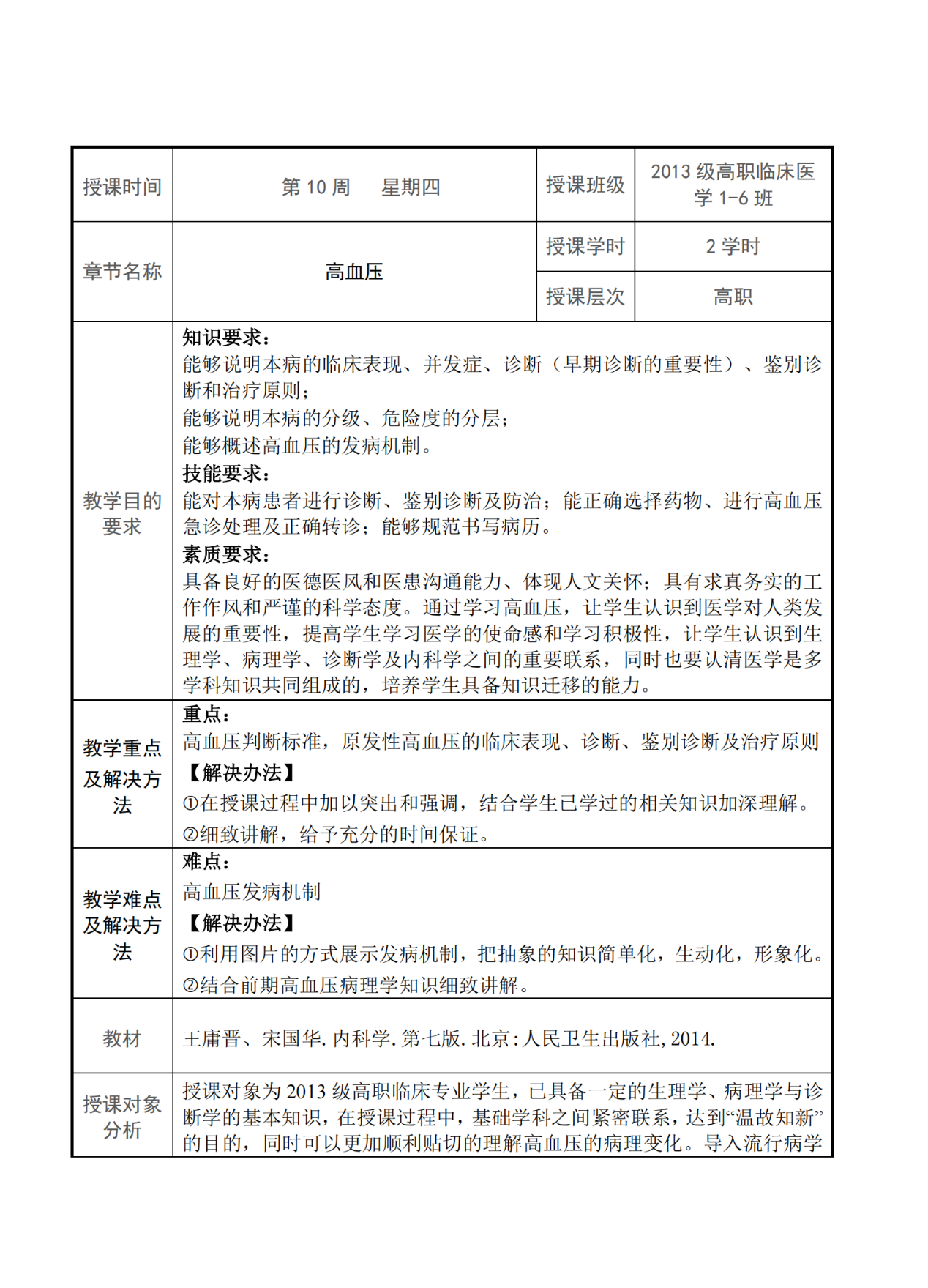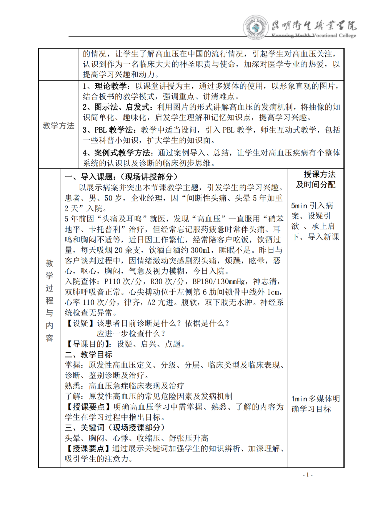 《原发性高血压》教案(内科学)