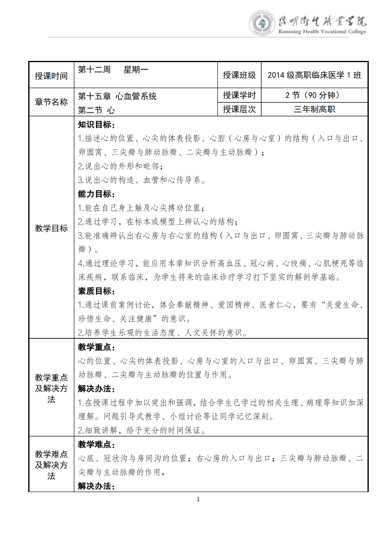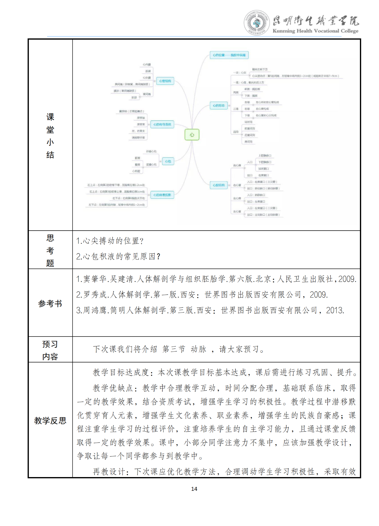 《心》教案(人体解剖学与组织胚胎学)