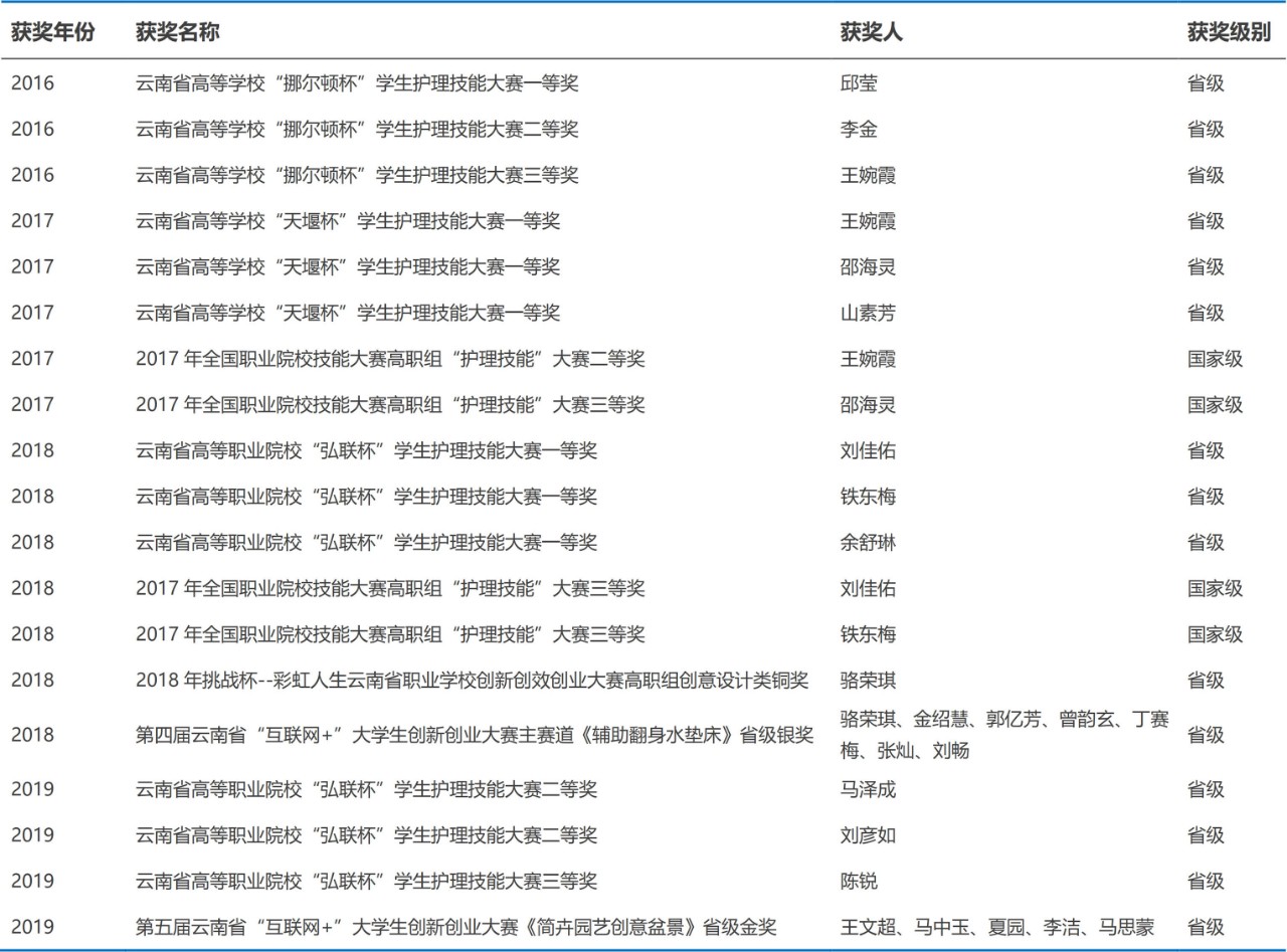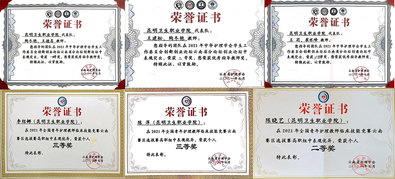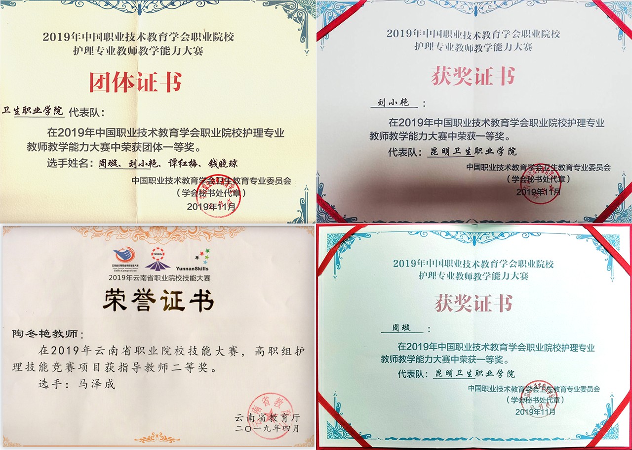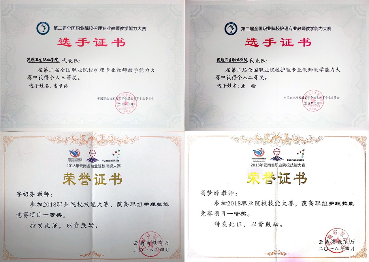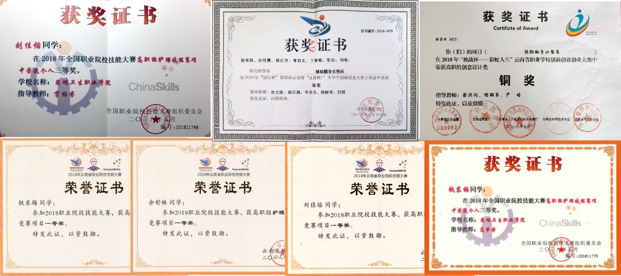 近五年来护理学院高度重视师生培养,积极鼓励广大师生参加大赛,秉承以赛促学、以赛促教的教学原则,一是以比赛为契机,加大对教师的培训力度,提高对教师的教学要求,不断提升自身素养,吸收新的教学理念,学习新的专业知识,向复合型教师转变。二是巩固学生的专业技能,激发学生学习热情,培养高素质技术技能专门人才,为学生就业打下坚实基础,多次荣获省级及国家级奖项。