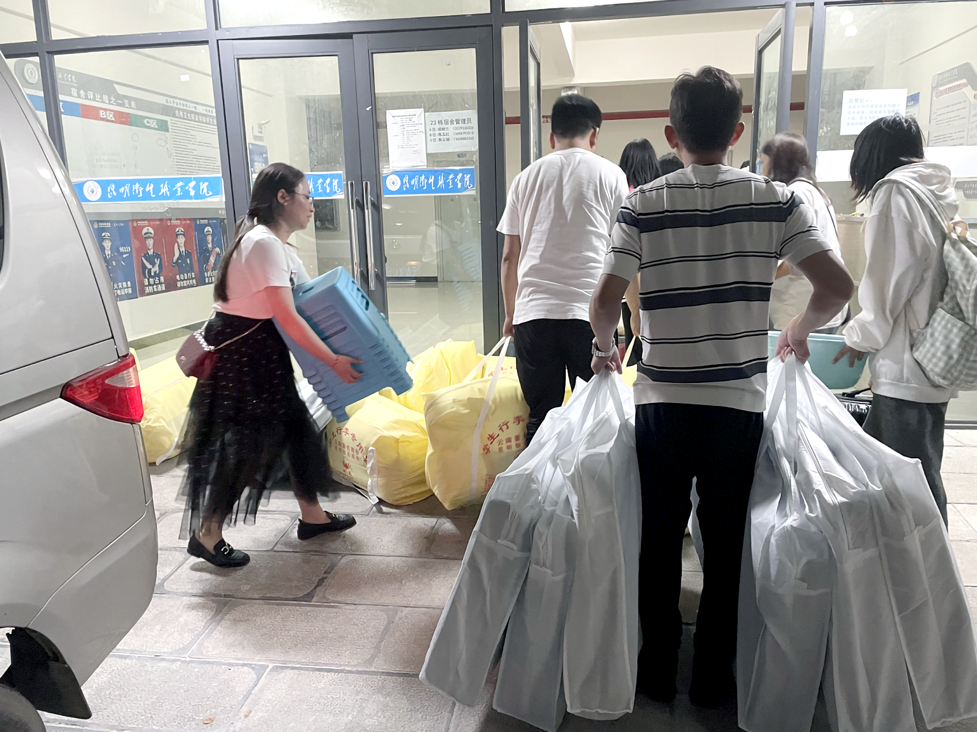 学院招生办及招生组教师深夜帮助新生搬行李