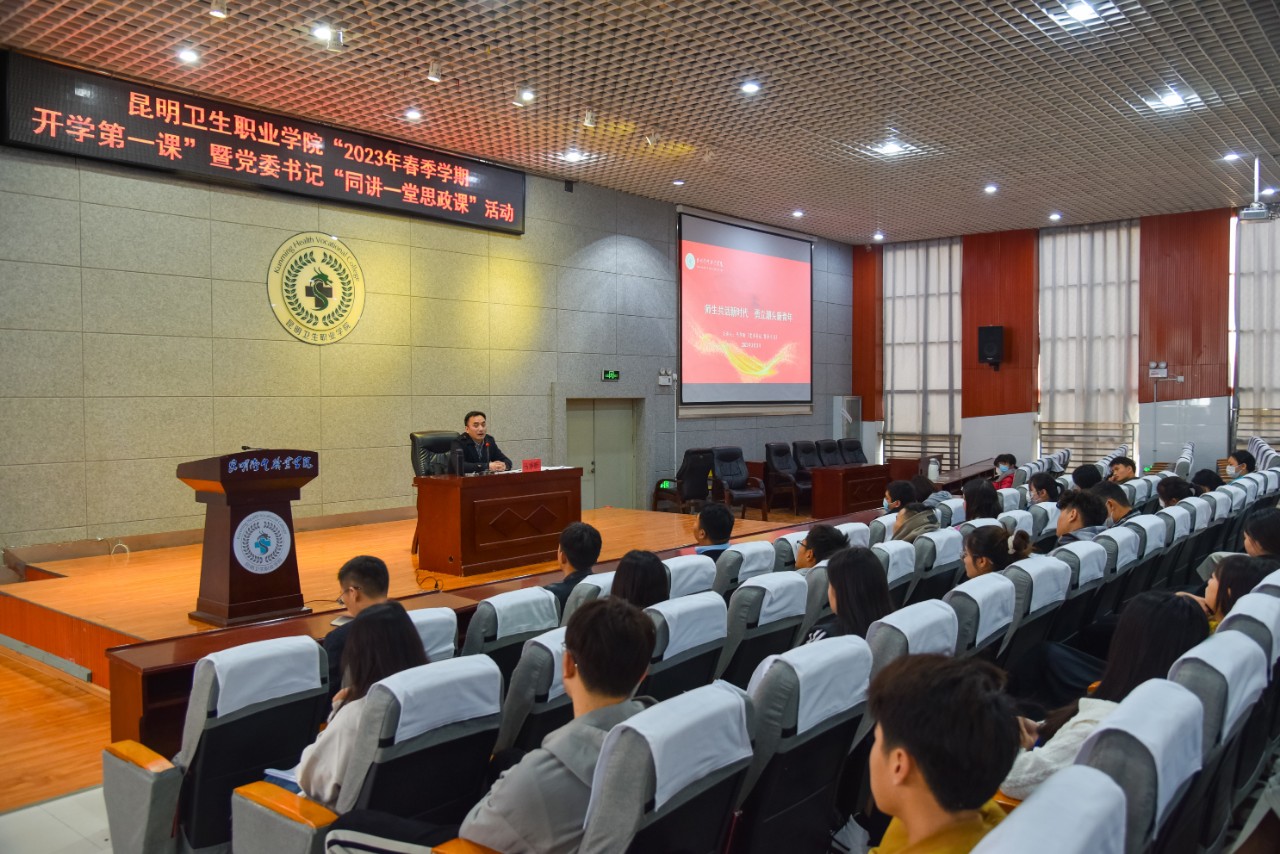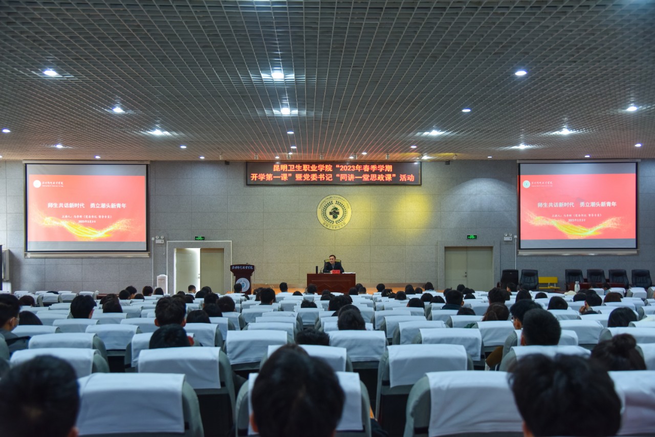 为全面贯彻党的教育方针,深入落实立德树人根本任务,进一步加强学生思想政治教育,2023年3月3日下午,XK星空“2023年春季学期开学第一课暨同讲一堂思政课”在学术报告厅举行。学院党委书记马季昕以《师生共话新时代 勇立潮头新青年》为题进行专题授课。党委委员、宣传统战部部长王斌主持会议,党委办公室、学院办公室等部门负责人,学院师生代表200余人现场聆听。