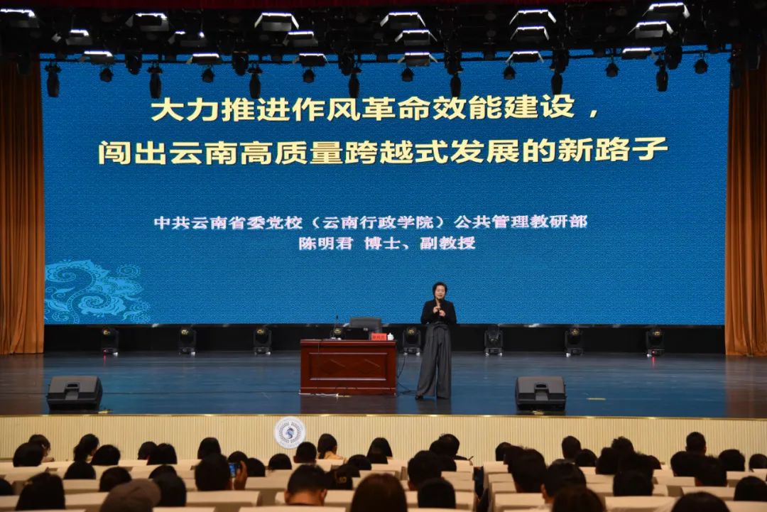 继4月7日党政干部培训班开班,省委党校陈明君博士以《大力推进作风革命效能建设 闯出云南高质量跨越式发展的新路子》做了首场专题报告,干部学习培训常态化、长效化开展。