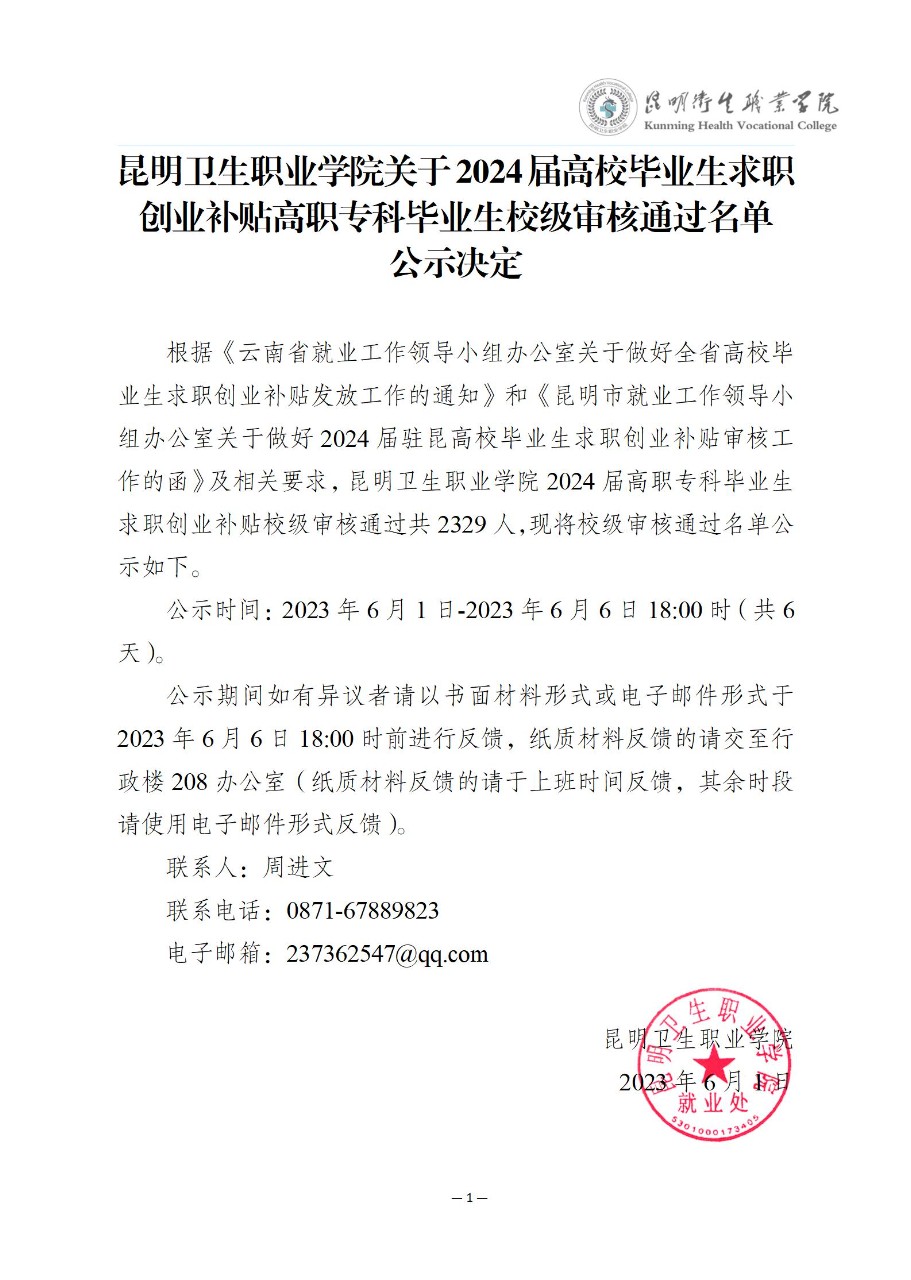 XK星空关于2024届高校毕业生求职创业补贴高职专科毕业生校级审核通过名单公示决定