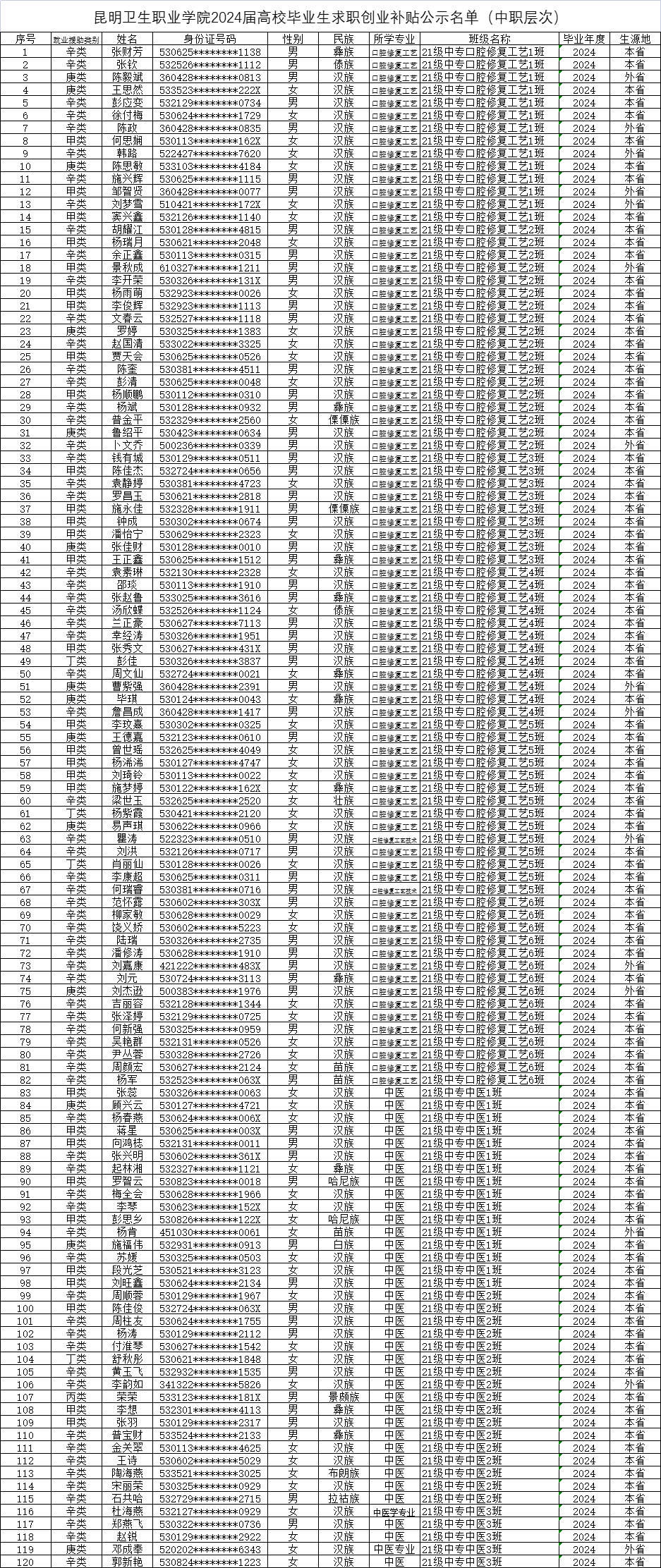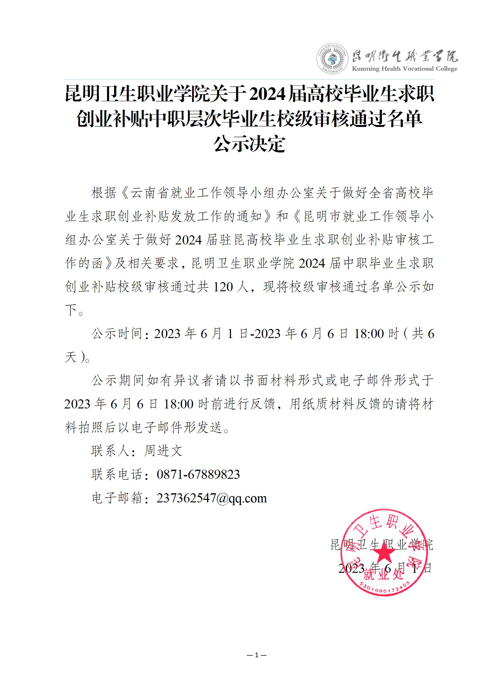 XK星空关于2024届高校毕业生求职创业补贴中职层次毕业生校级审核通过名单公示决定