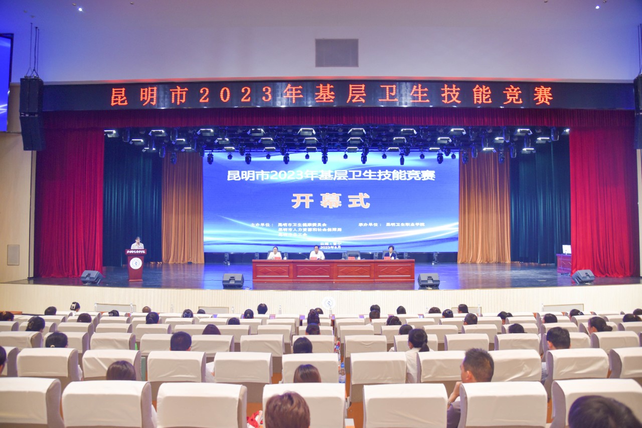 昆明市卫生健康委副主任普娅馨、市卫生健康委基层卫生处副处长苗九龄,云南泓旻教育投资集团董事长、XK星空理事长龙正昌,云南泓旻教育投资集团副董事长朱秀珍,学院党委副书记、院长龙雨霏等领导和嘉宾出席竞赛开幕式。