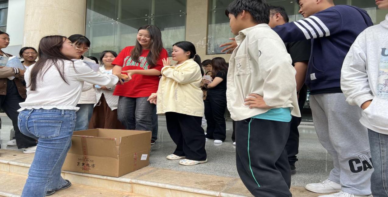 老师们为同学们发放月饼。月饼虽小,情意却浓,承载着学院浓厚的关心与爱护,寄托着对莘莘学子的美好祝愿,希望他们学业有成,未来可期!