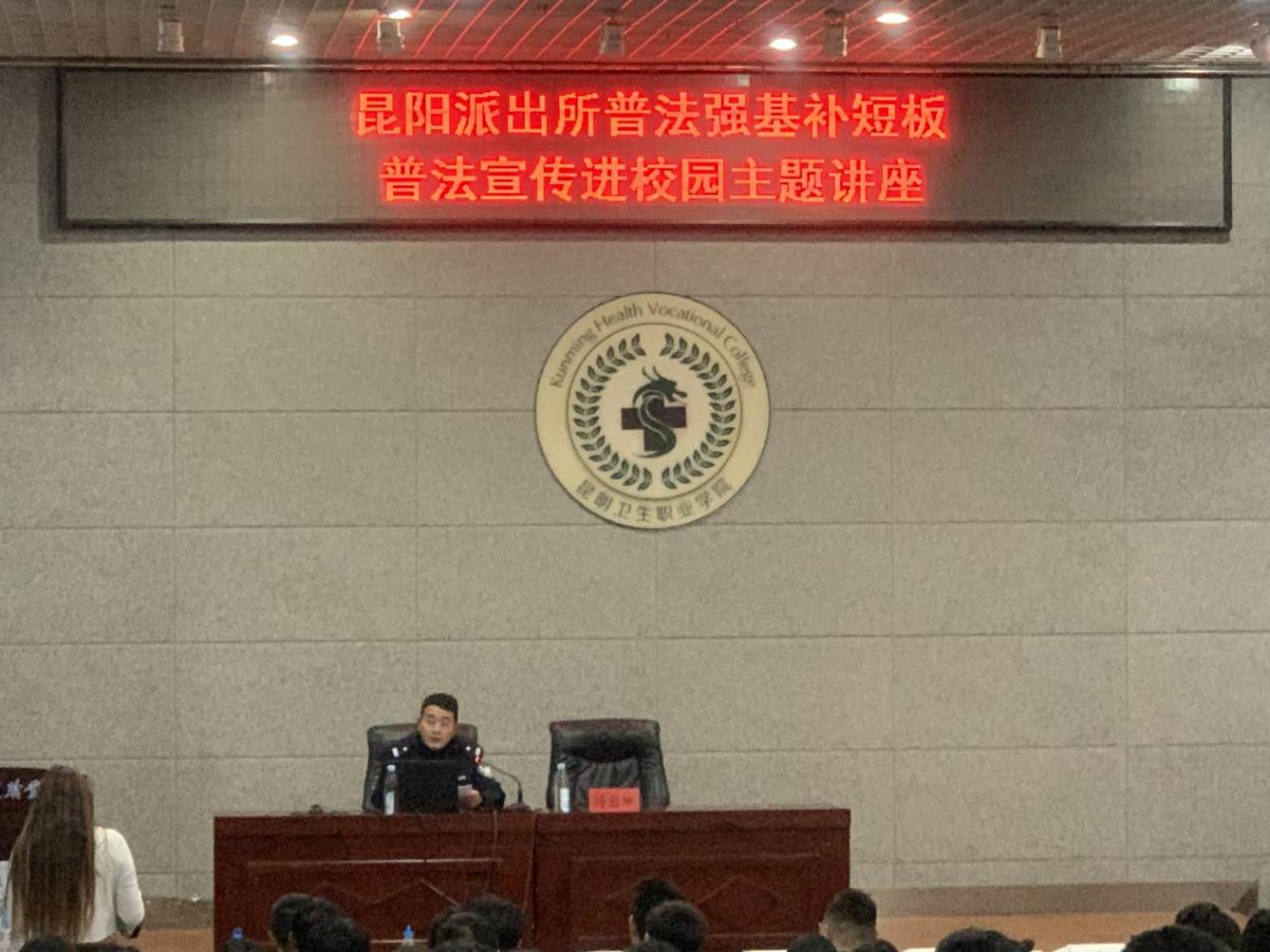 为进一步增强学生的法治观念,树立法律意识,提高学生知法、懂法、用法的自觉性,做一名维护法律尊严的合格大学生。2023年10月26日大学生工作部联合昆阳派出所在学术报告厅开展“普法强基补短板,普法宣传进校园”讲座。