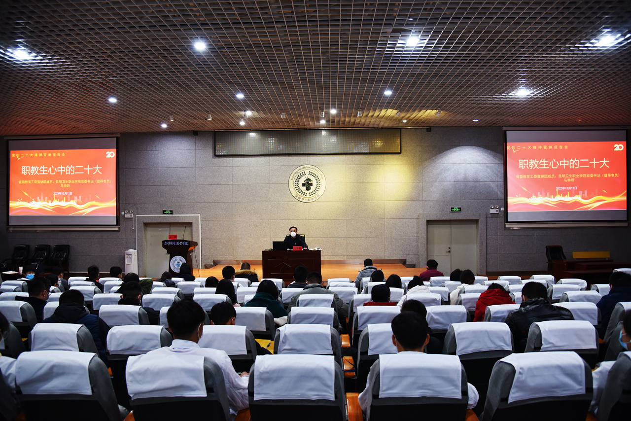 11月18日下午,学院党的二十大精神专题宣讲报告会在学术报告厅召开。省委教育工委宣讲团成员、学院宣讲团团长、学院党委书记马季昕以“职教生心中的二十大”为主题进行宣讲。学院师生代表近200人参加学习。马书记深入结合党的十九届五中、六中全会精神,从党的二十大报告撰写讲起,带领全体党员...