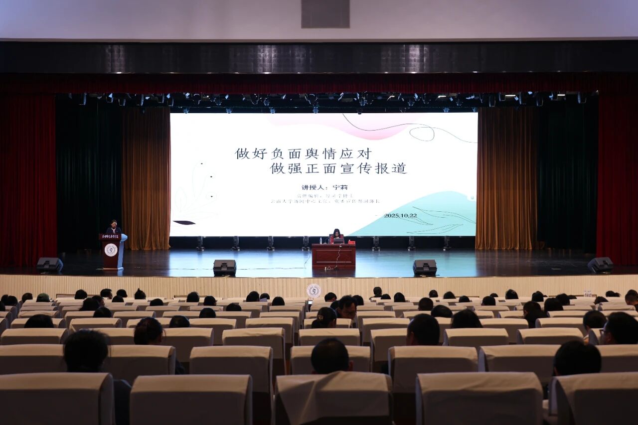 为适应新媒体时代发展要求,进一步提升学院网络舆情应对与处置能力,有效维护校园和谐稳定,10月22日下午,学院特邀高级编辑、经济学博士、云南大学新闻中心主任、党委宣传部副部长宁莉到校开展题为“做好负面舆情应对做强正面宣报道”的专题讲座。各党支部书记、相关部门负责人出席讲座,宣传委员...