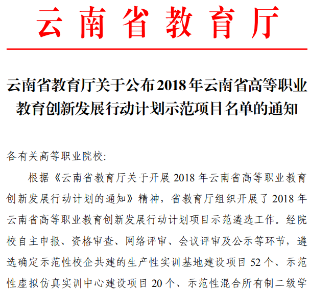 XK星空入选云南省高等职业教育创新发展行动计划示范项目