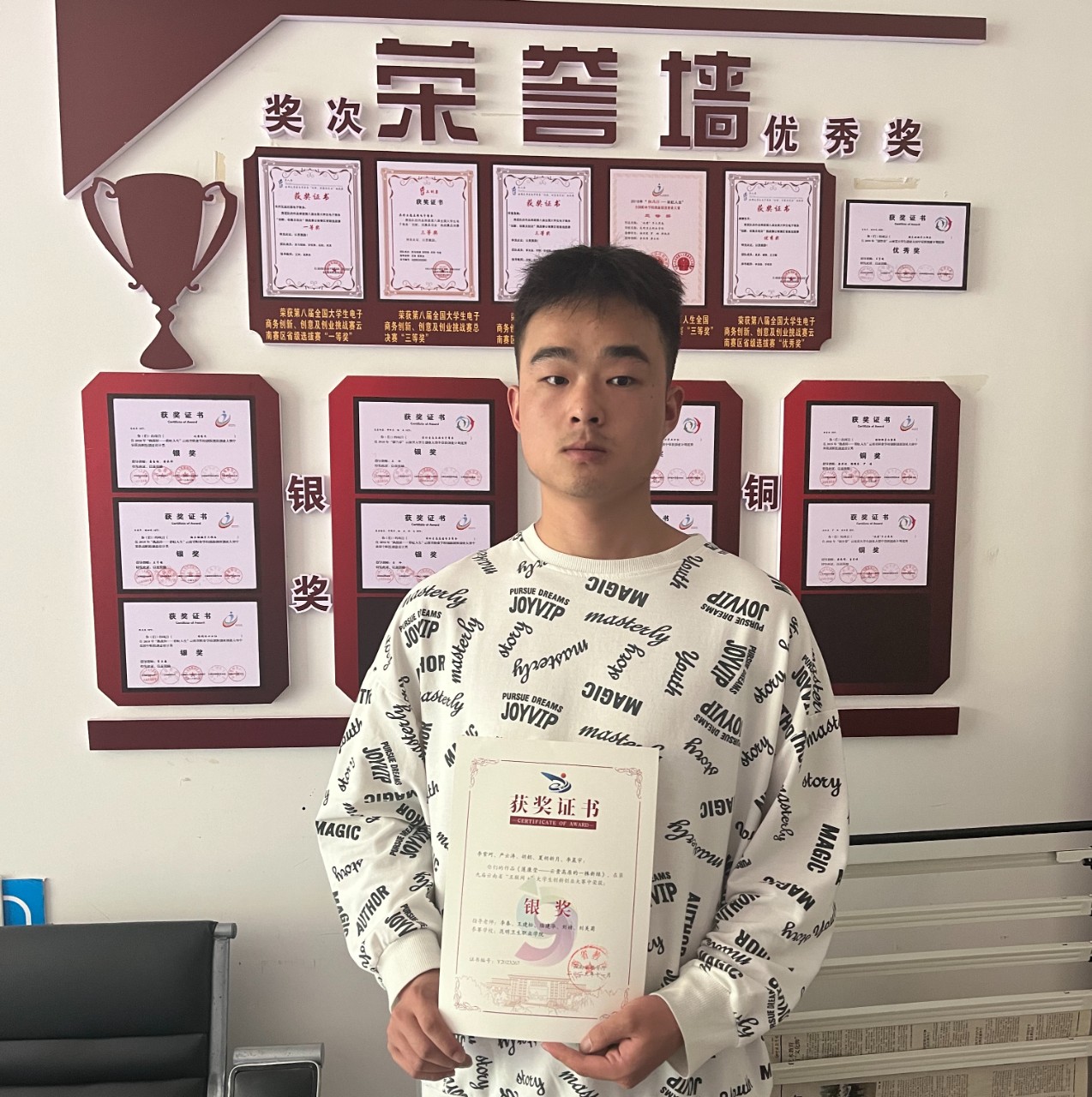 领取证的指导教师和同学都兴高采烈,他们的付出都得到了收获,衷心希望他们在未来的学习生活或工作中,能保持坚强拼搏的意志力,不畏艰难,蓄势高远,再创佳绩!