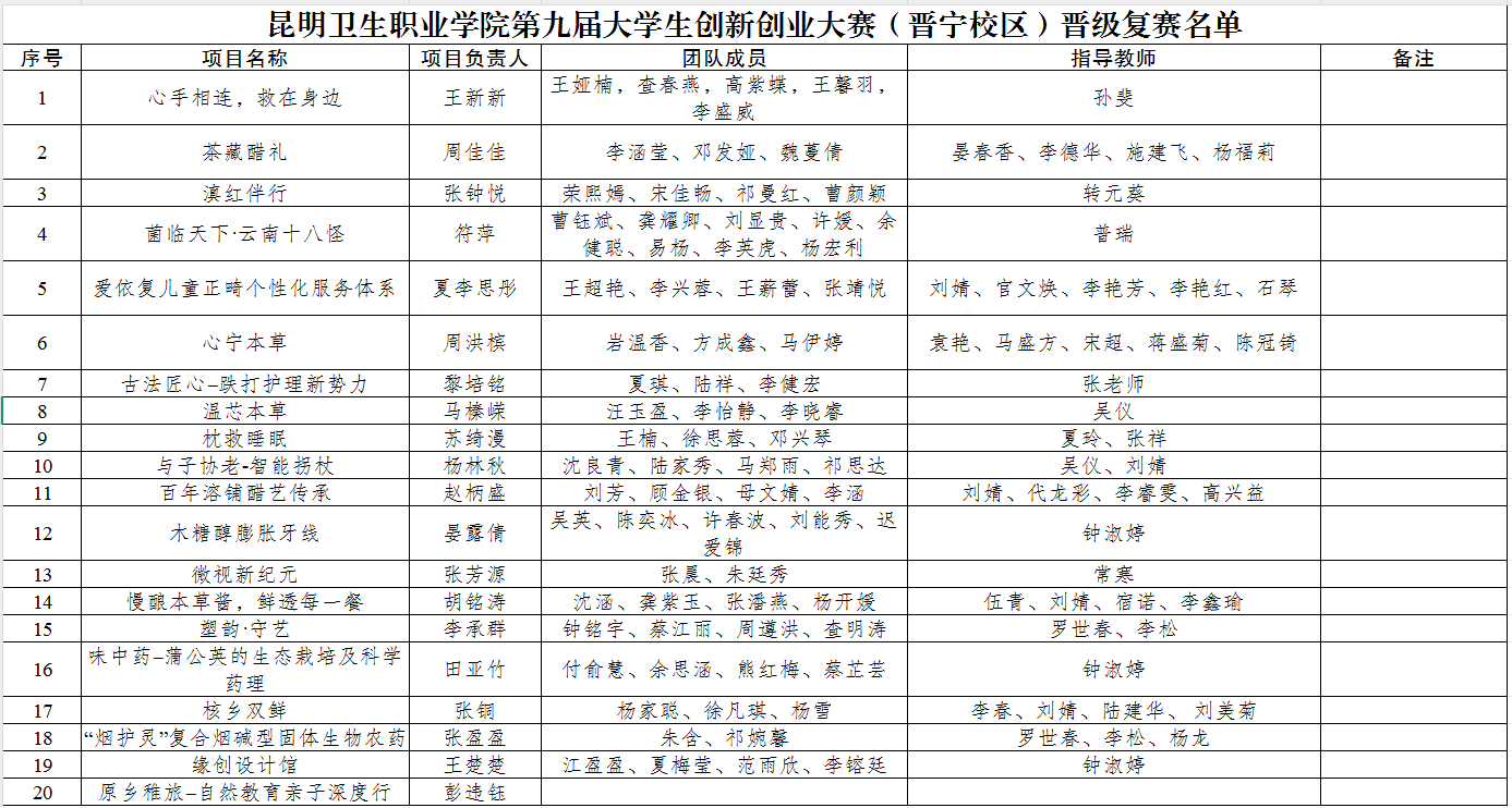 学院第九届创新创业大赛项目网络评审工作已结束,经审定,现将晋级复赛团队名单及相关事宜通知如下: