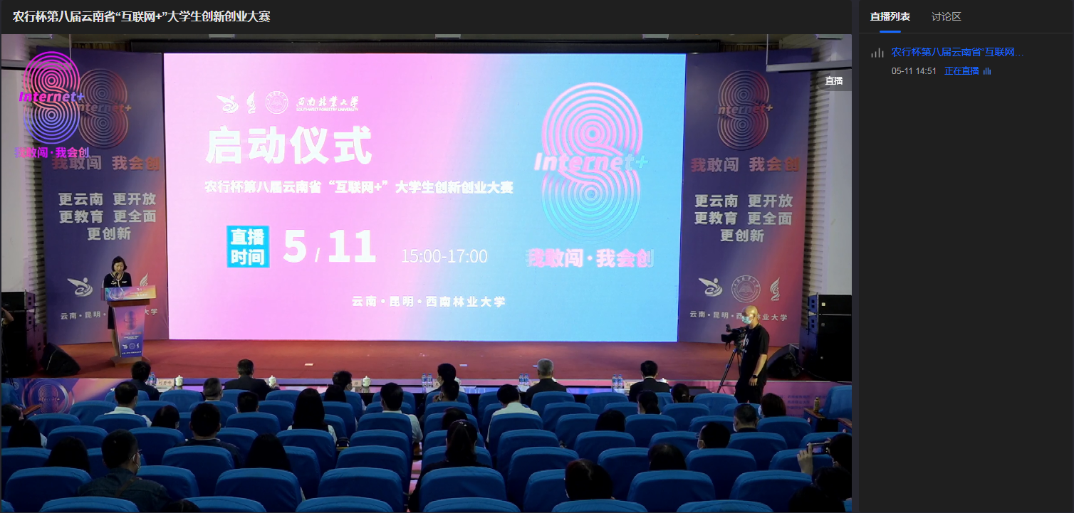 5月11日,农行杯第八届云南省“互联网+”大学生创新创业大赛启动仪式在西南林业大学举行。本届大赛由云南省教育厅、云南省科技厅联合主办,西南林业大学承办。以“我敢闯、我会创”为主题,总体目标为:更中国、更国际、更教育、更全面、更创新,传承和弘扬红色基因,聚焦“五育”融合创新创业教育实践,激发青年学生创新创造热情,线上线下相融合,打造共建共享、融通中外的国际创新创业盛会,开启创新创业教育改革新征程。