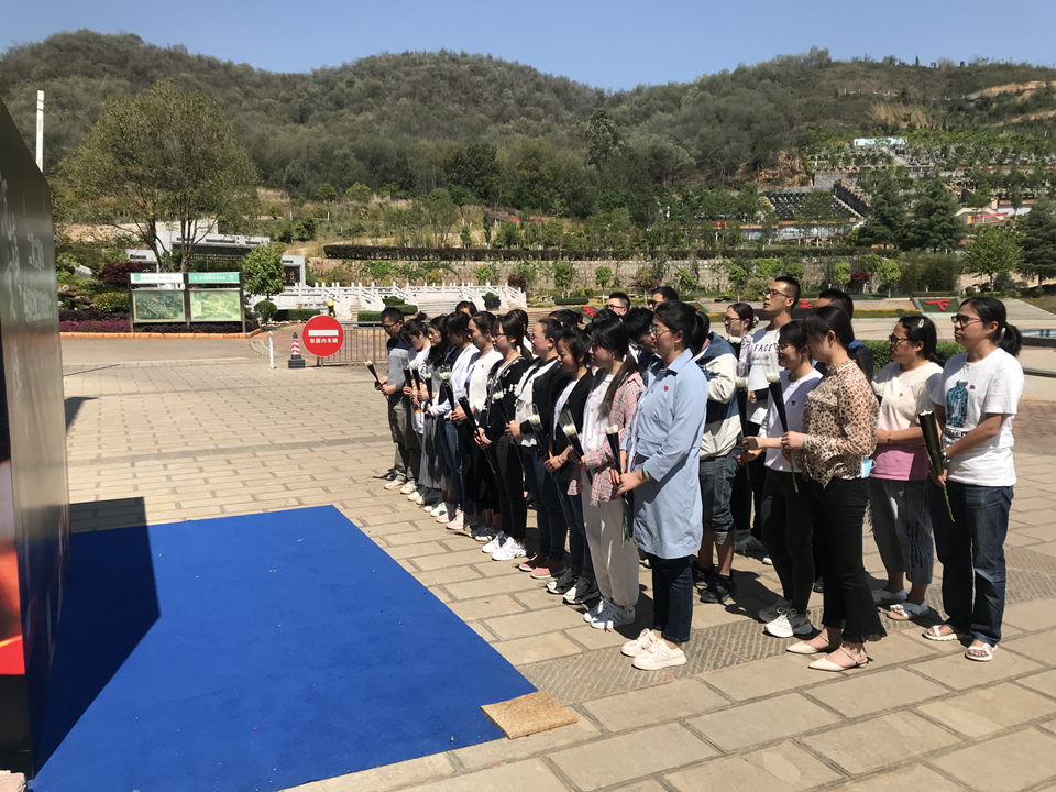 在党支部书记罗正超的带领下,大家有序参观了滇中军魂主题雕塑墙、革命烈士陵墓、滇中军魂事迹陈列馆、劳动者之歌事迹陈列馆、峥嵘岁月事迹陈列馆、红色印记墙等。大家在烈士墓碑前低头鞠躬并默哀,寄托对烈士的哀思。并为烈士们敬上装载着崇敬之意的鲜花,以示对戍边烈士们的缅怀和敬意。
