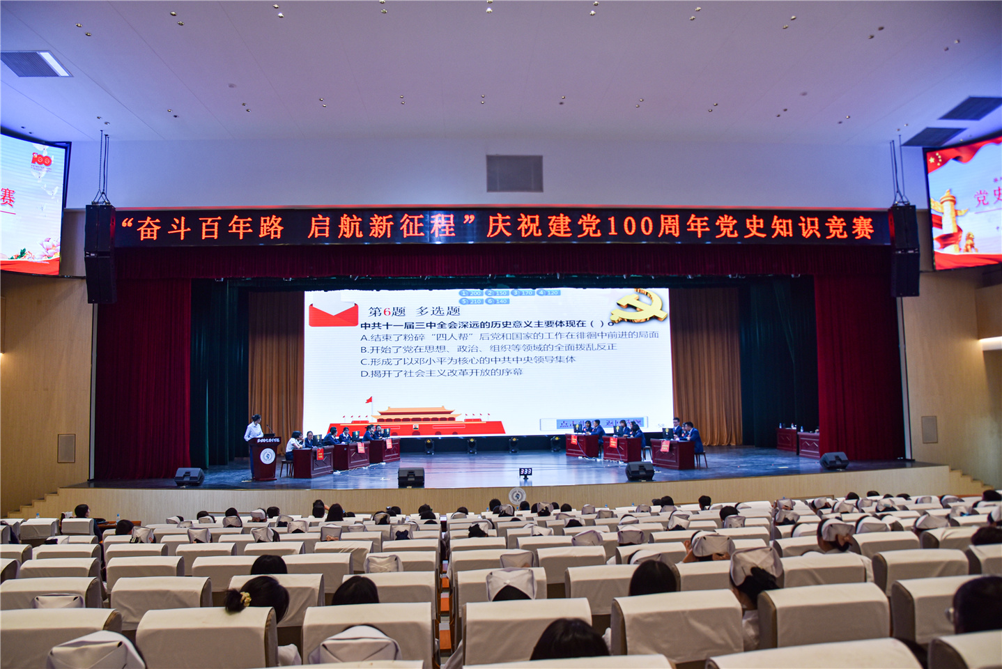 为迎接党的百年华诞,持续推动党史学习教育走深走实,营造浓厚的党史学习氛围,6月4日,XK星空在明德会堂举行“奋斗百年路 启航新征程”庆祝中国共产党建党100周年党史知识竞赛活动。