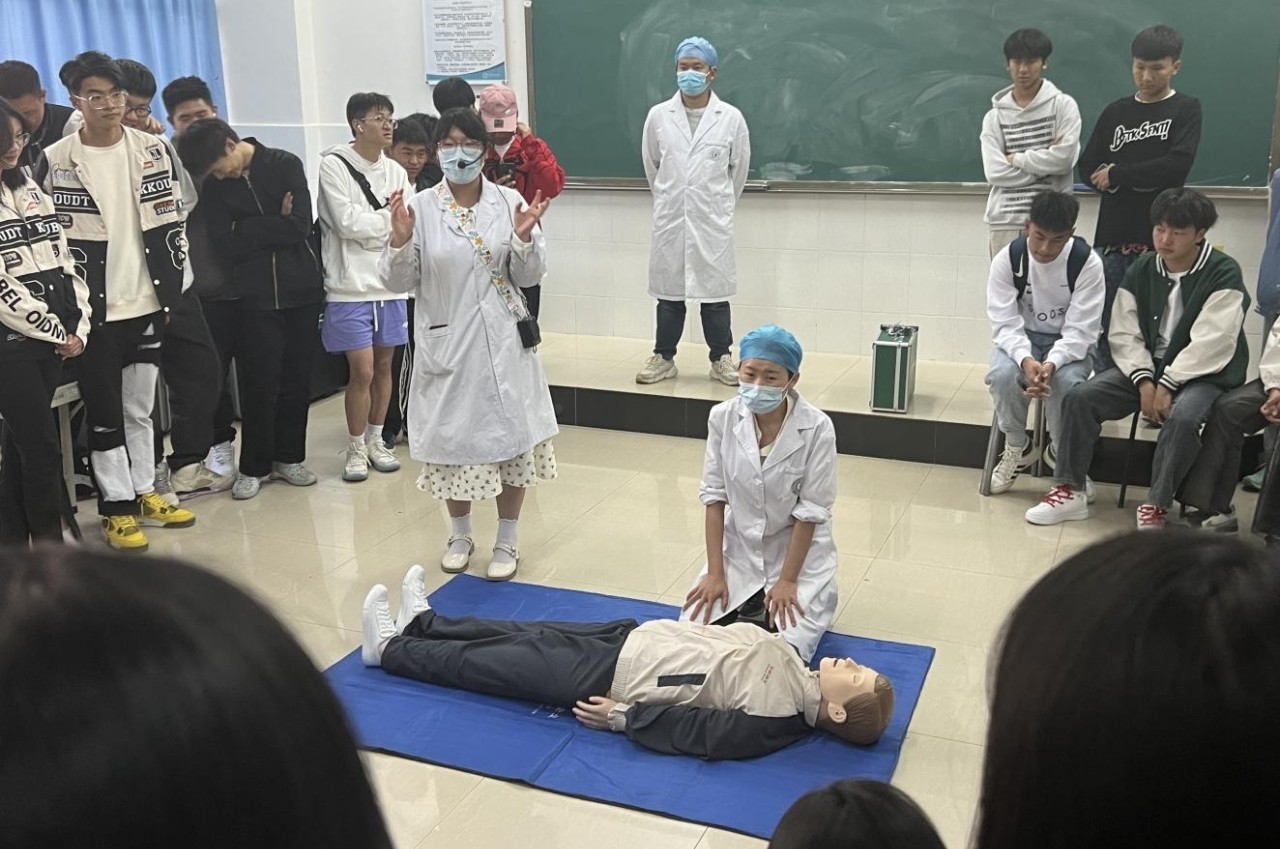 为进一步提高公共学院体育教研室、体测中心教师和助教在突发事件中的应急救护能力和掌握基本的急救技能,以及止血术、包扎术、固定术、搬运术等院前急救技术,中暑、休克、心脏骤停等常见户外急救处理常识,切实保障师生的生命安全。教务处组织临床学院为公共学院体育教研室、体测中心全体教师和助教提供急救知识普及培训工作。