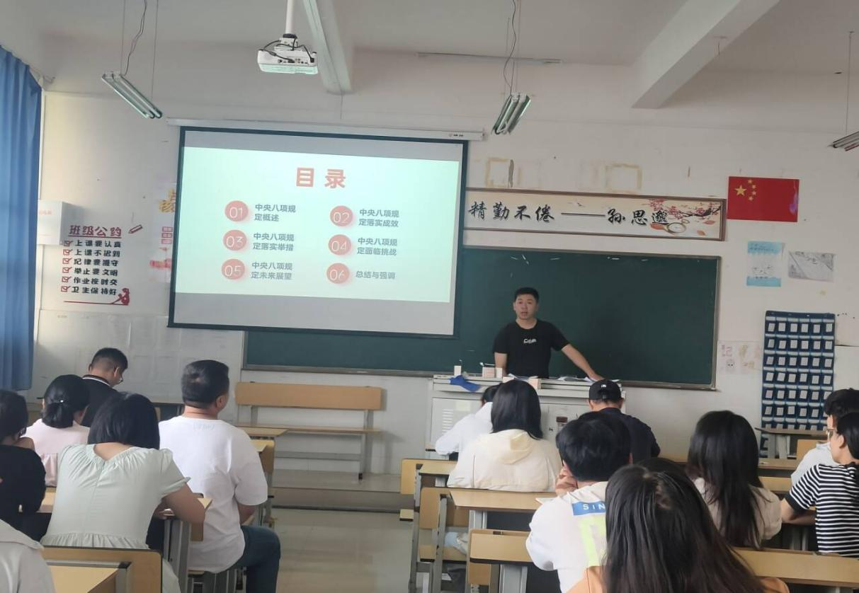 为深入贯彻全面从严治党战略方针,持续加强党员干部作风建设,切实将中央八项规定精神内化于心、外化于行,2025年7月18日,公共学院直属党支部精心组织开展中央八项规定精神专题党课学习活动。支部全体党员参会,通过系统学习、案例剖析,进一步拧紧纪律规矩“发条”,为学院高质量发展凝聚廉洁奋进力量。