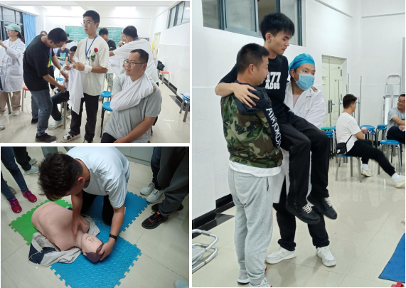 9月7日,结合理论内容,进行了心肺复苏、止血包扎、海姆立克急救法、骨折固定及搬运的操作演示,并详细讲解了操作要领。为了保证培训质量,提高学员的实践操作水平,学员们进行了现场实操学习,培训指导教师巡回纠错,不断提高学员实操的质量和效率。最后,有序地组织学员进行理论和实操的考核。