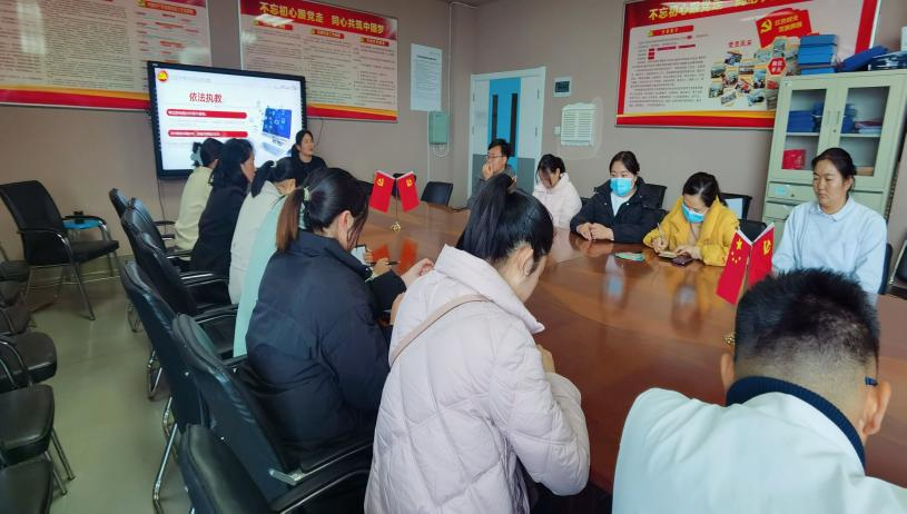 古人云:“才者,德之资也;德者,才之帅也。”育人的根本在于立德。为了持续推进对党的二十大精神的学习,深入贯彻落实习近平法治思想,根据《“清廉学校”建设实施方案》要求,为增强教师的法律法规意识,切实提高教师师德修养,弘扬教风正气,增强教师依法执教的能力,推动清廉学校建设。护理学院第一党支部于2023年1月9日在护理学院411党员活动室开展了一次关于“弘扬法治精神,规范依法执教”主题党日活动。