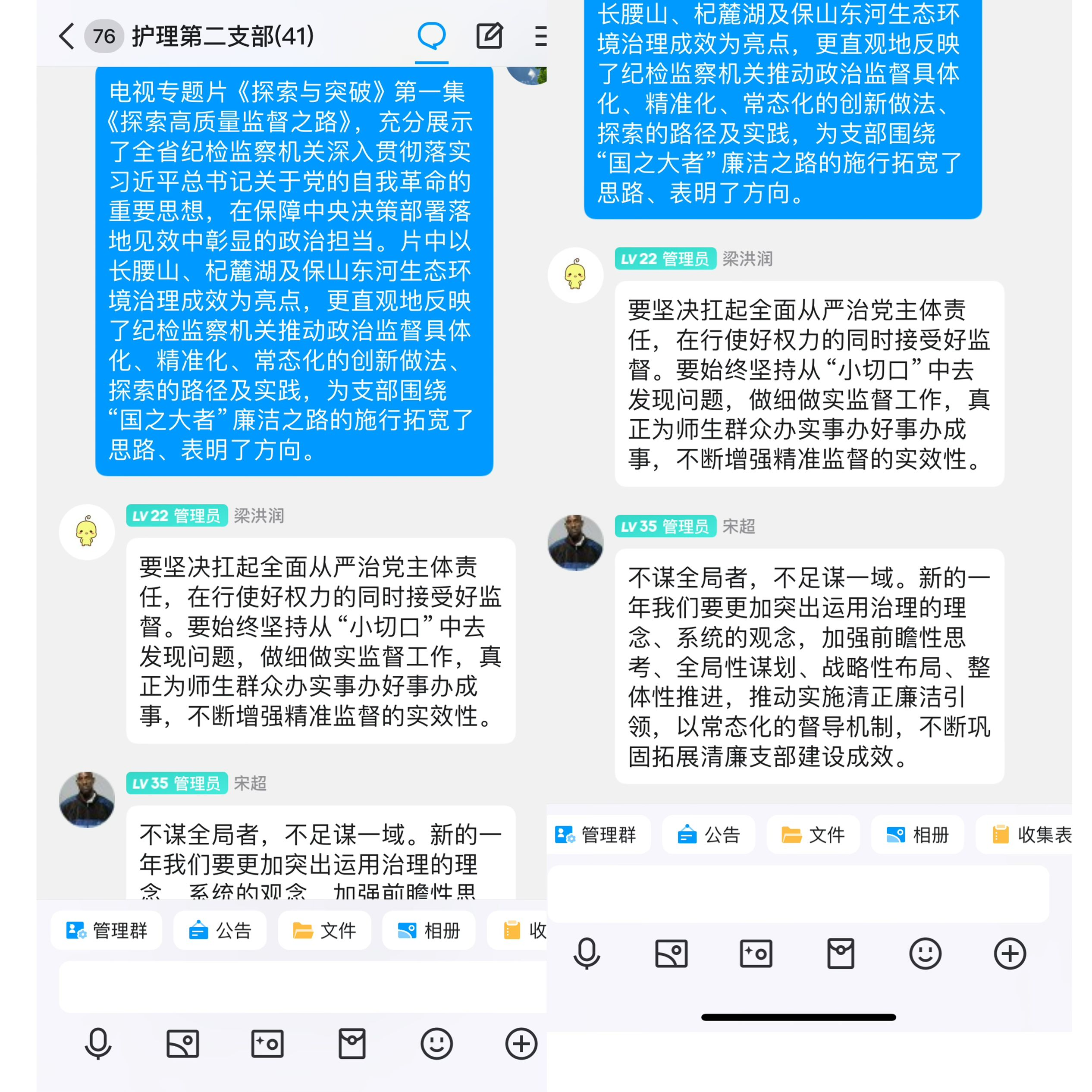 2024年2月20日-22日,由云南省纪委监委宣传部与云南广播电视台联合摄制的三集电视专题片《探索与突破》开播以后,XK星空护理第二党支部第一时间组织支部广大党员同志通过网络、电视和手机客户端等媒体收看该节目,并迅速在支部范围内掀起热议,同志们纷纷发表感想。