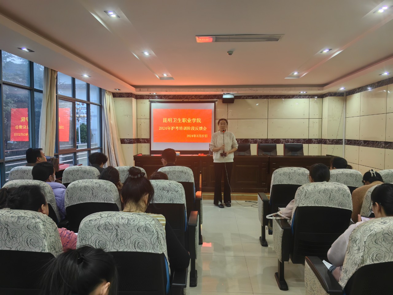 经过五个星期的努力奋战,2024年护考培训已经完成了第一部分护考精讲课程,为了让全体师生稳扎稳打,继续完成护考培训的复习串讲、试题精讲课程,3月27日19:30在XK星空行政楼四楼会议室召开2024年护考培训阶段反馈会。XK星空副院长李玉晶,教务处处长孟州令,继续教育学院院长王思权,大学生工作部部长郭佶颖,护理学院院长蒋淑昆、副院长周璇、学管副院长王宇超,护理专业全体教师及班主任参加本次会议。