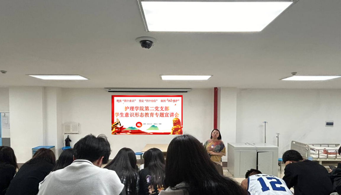 4月23日19:30,护理学院第二党支部组织五年制各班学生代表在护理学院101开展了“护理学院第二党支部学生意识形态教育专题宣讲会”,会议由支部副书记何娇同志主持。