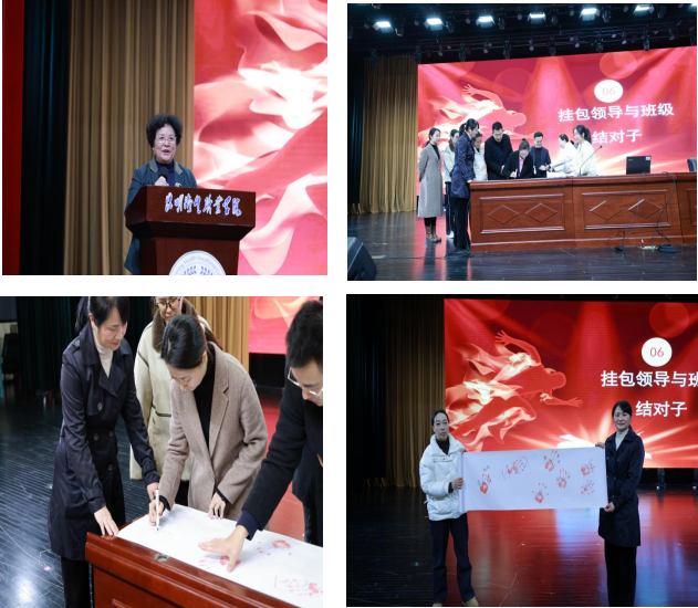 备受瞩目的挂包领导与班级结对子环节更是将大会气氛推向了高潮。先是护理学院院长蒋淑昆教授郑重宣布了领导挂包名单,紧接着各位挂包领导依次上台,庄重地按手印确认与相应班级的结对关系。这一举措无疑进一步拉近了师生间的距离,为同学们在培训期间能够获得更为贴心的指导与有力的支持提供了保障。