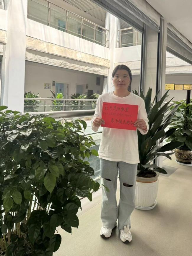书写完成后,大家手持表白卡纸,在党员活动室、教室、实训室、教学楼以及红色相关背景墙等场景中拍摄照片。这些照片不仅记录下党员师生的赤诚之心,更展现出护理学院第三党支部昂扬向上的精神风貌。