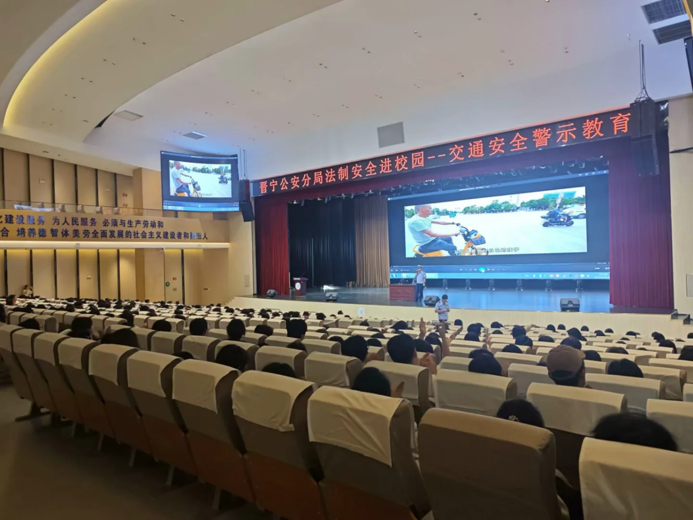 2025年6月17日18:30,XK星空护理学院联合昆明市公安局晋宁分局,在校园内举办“法制安全进校园·交通安全警示教育”专题活动。晋宁公安分局交通警察大队、刑事侦查大队及驻校民警代表现场授课,护理学院1200余名师生参与活动,通过案例剖析、互动教学等形式,筑牢校园安全防线。