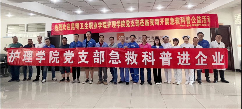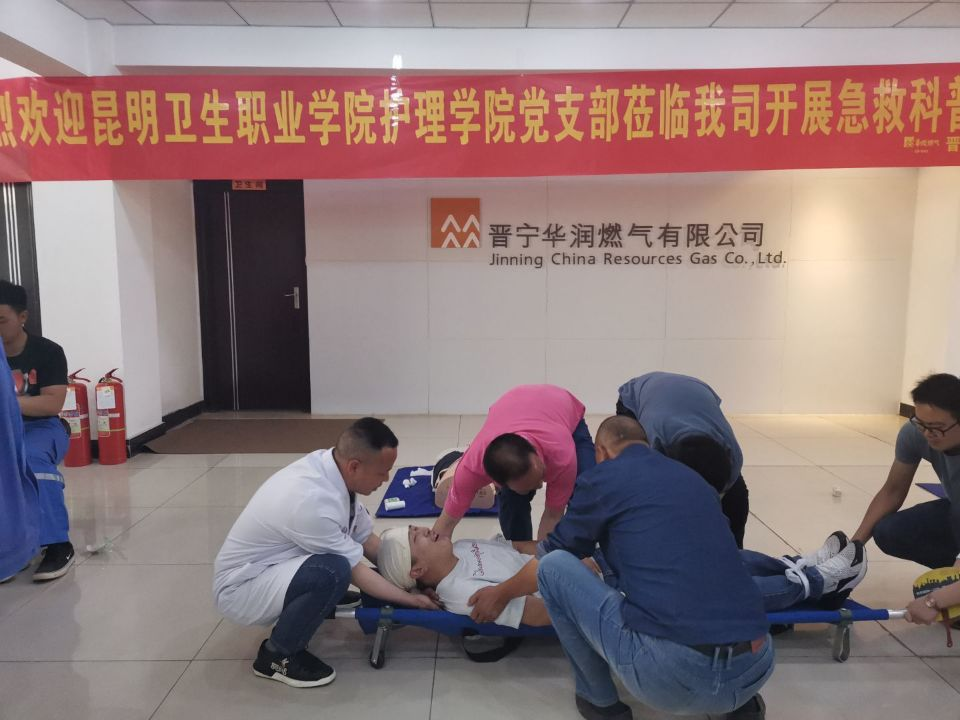 5月28日下午,由急救教研室和成人护理教研室抽调6名同志组成的急救科普志愿服务团队在XK星空护理学院党支部副书记尹培同志的带领下,前往晋宁华润燃气有限公司,为公司员工开展了一场急救知识与技能培训讲座。