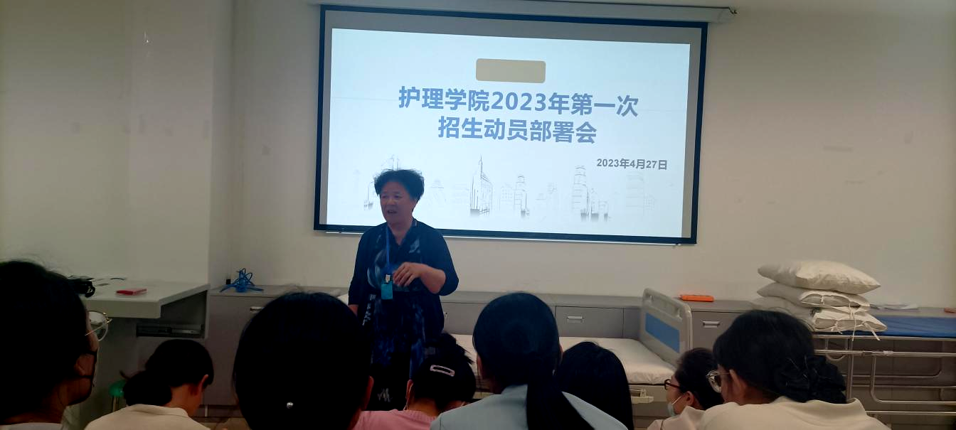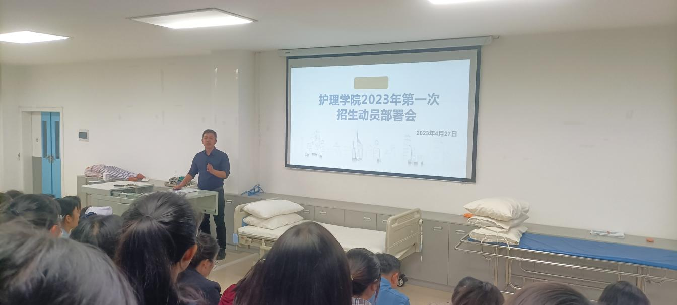 2023年4月27日,护理学院在学院101召开2023年第一次招生动员大会,对招生宣传工作做全面部署。会议由护理学院院长蒋淑昆主持,护理学院全体教师、辅导员参加会议。