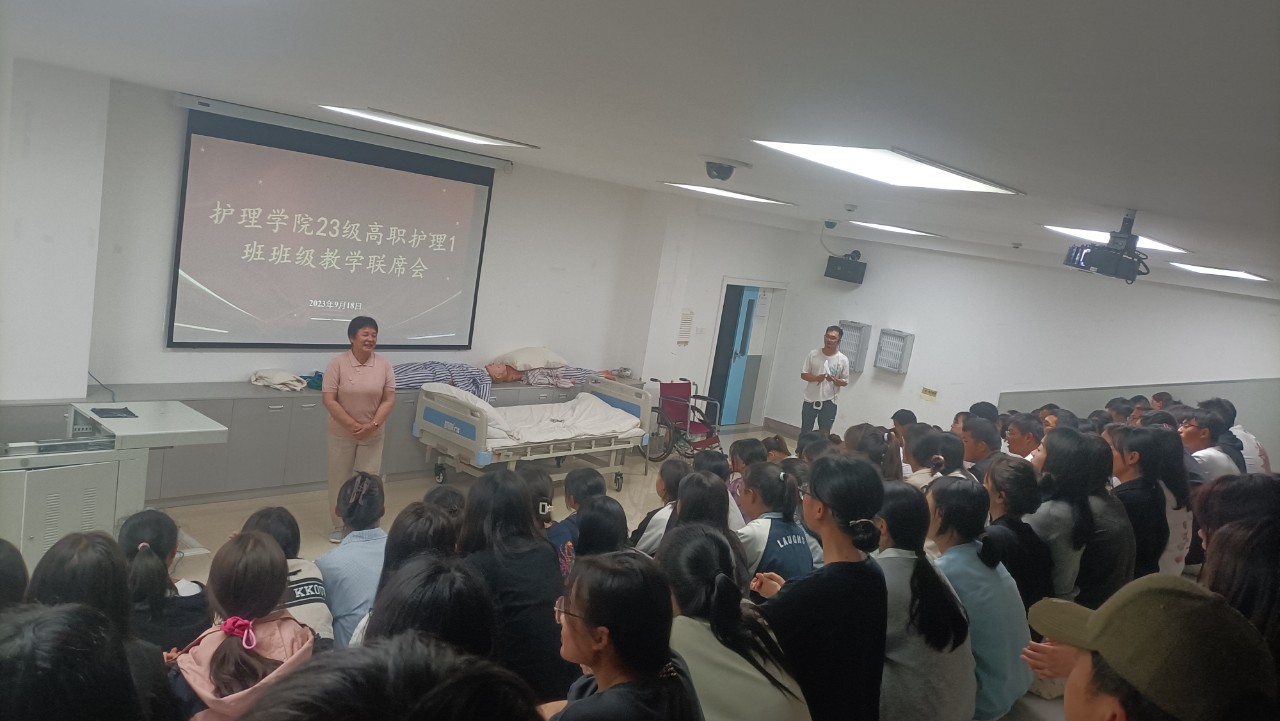 9月18日晚19:00,XK星空于护理学院101召开班级教学联席会,教务处处长孟州令、护理学院院长蒋淑昆、护理学院党支部总书记宋超、护理学院副院长周璇、护理学院副院长王宇超、护理学院党政办主任李丽、护理学院教学办主任李春逵、护理学院学管办主任马盛芳及23级高职护理1班任课教师及全体学生参会。会议由王宇超老师主持。