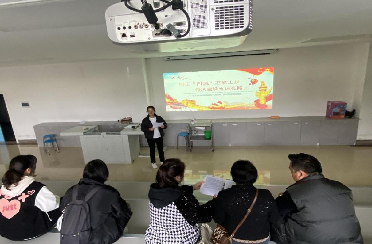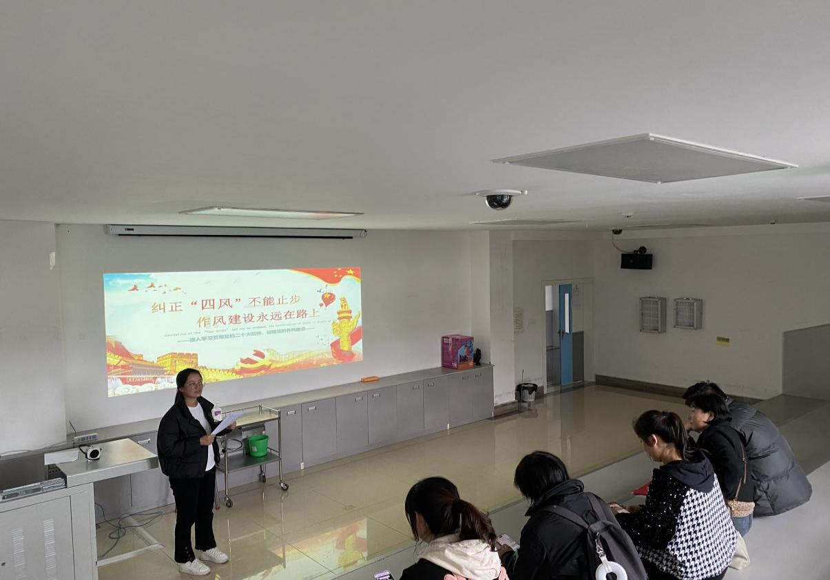 为深入学习贯彻党的二十大精神和习近平新时代中国特色社会主义思想,不断增强落实中央八项规定,强化护理学院第三党支部作风建设。护理学院第三党支部书记张雪雪于2023年11月29日以“纠正四风不能止步 作风建设永在路上”为主题开展党课。