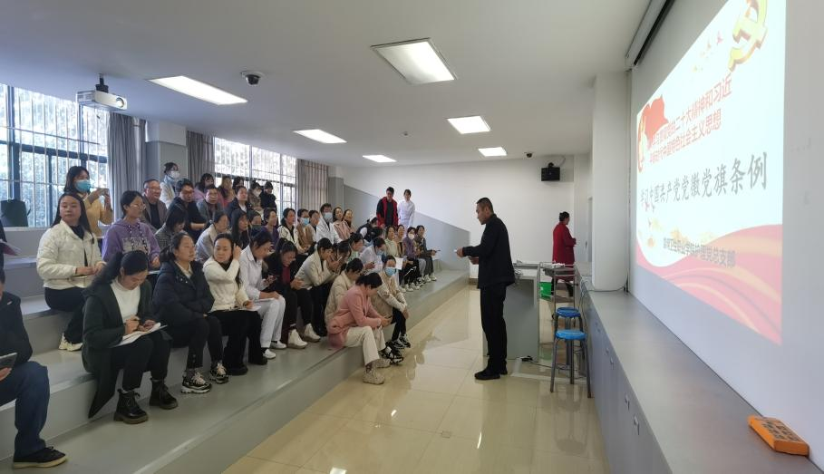 为加强大学生的思想政治教育,坚定理想信念,进一步激发新时代青年的奋斗热情,做新时代合格大学生,2023年10月31日晚上,护理学院第一党支部书记蒋晓羽面向全体高职班级学生代表开展以“创新时代党支部,做新时代合格大学生”为主题的党建引领学生意识形态的的专题讲座。图1学生代表...