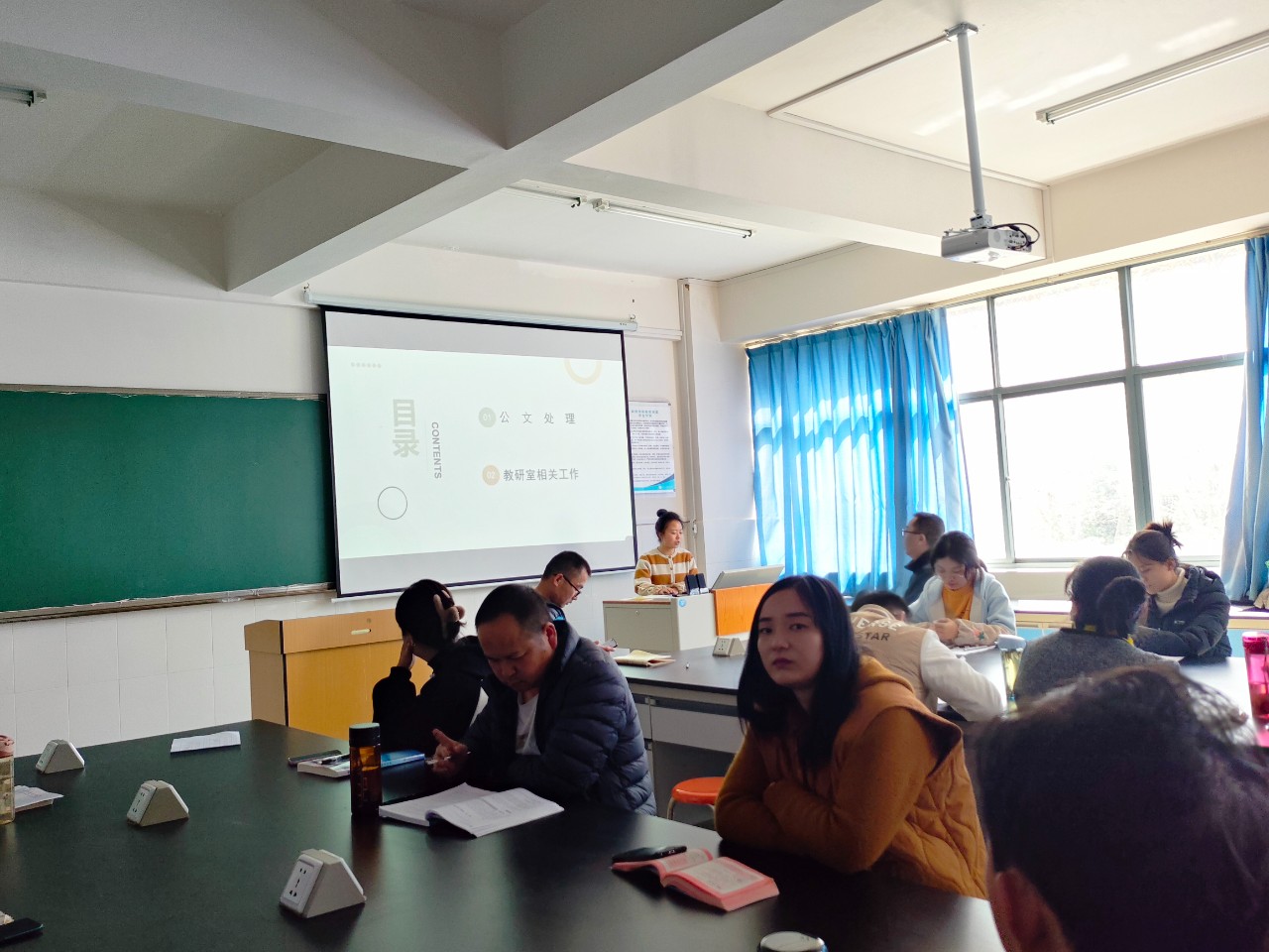 教学办主任袁媛阐述公文规范细则,希望教师们新学期里能按照规章制度完成相关任务;在备课、研究特色教学教法等方面对教研室工作做出安排,激励大家拓展学习专业知识,创建和谐奋进、扎实专业的教学团队。
