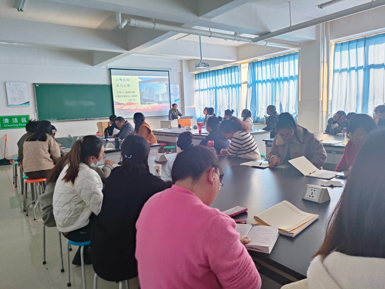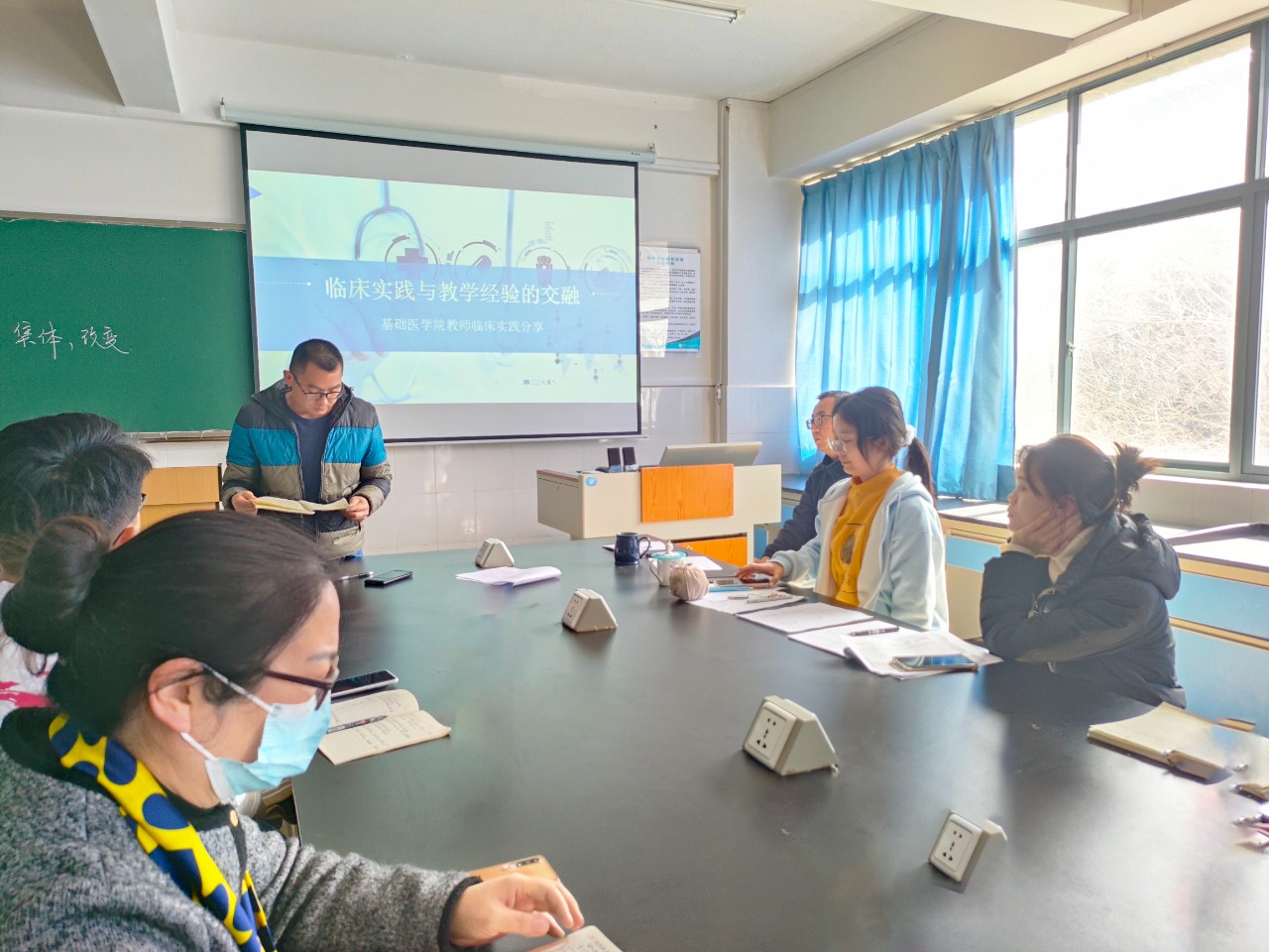 为促进理论知识与临床实践融合教学,在学校的统筹安排下,基础医学院教师们利用2023年寒假期间参与到临床见习中。2024年3月6日,学院针对此次临床实践组织开展学习分享活动,旨在推进学校“五位一体”总体布局,切实增强高质量教育服务紧迫性,激励一线教师们推进医教协同,打造独具特色的高效课堂。