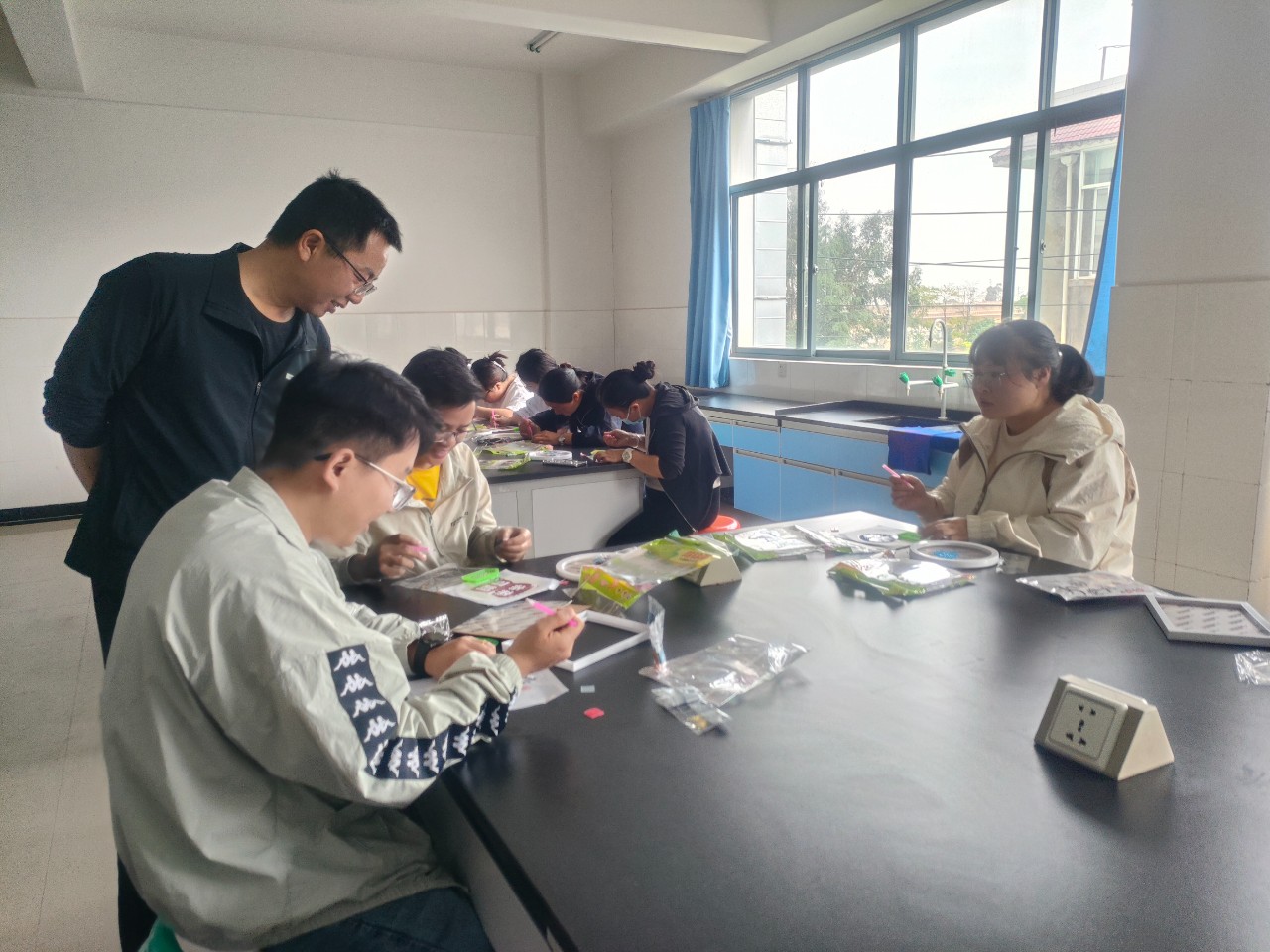 下午,教师们围坐在一起,手持点钻笔,将五彩斑斓的钻石粘贴在画布上,形成一幅幅精美的图案。